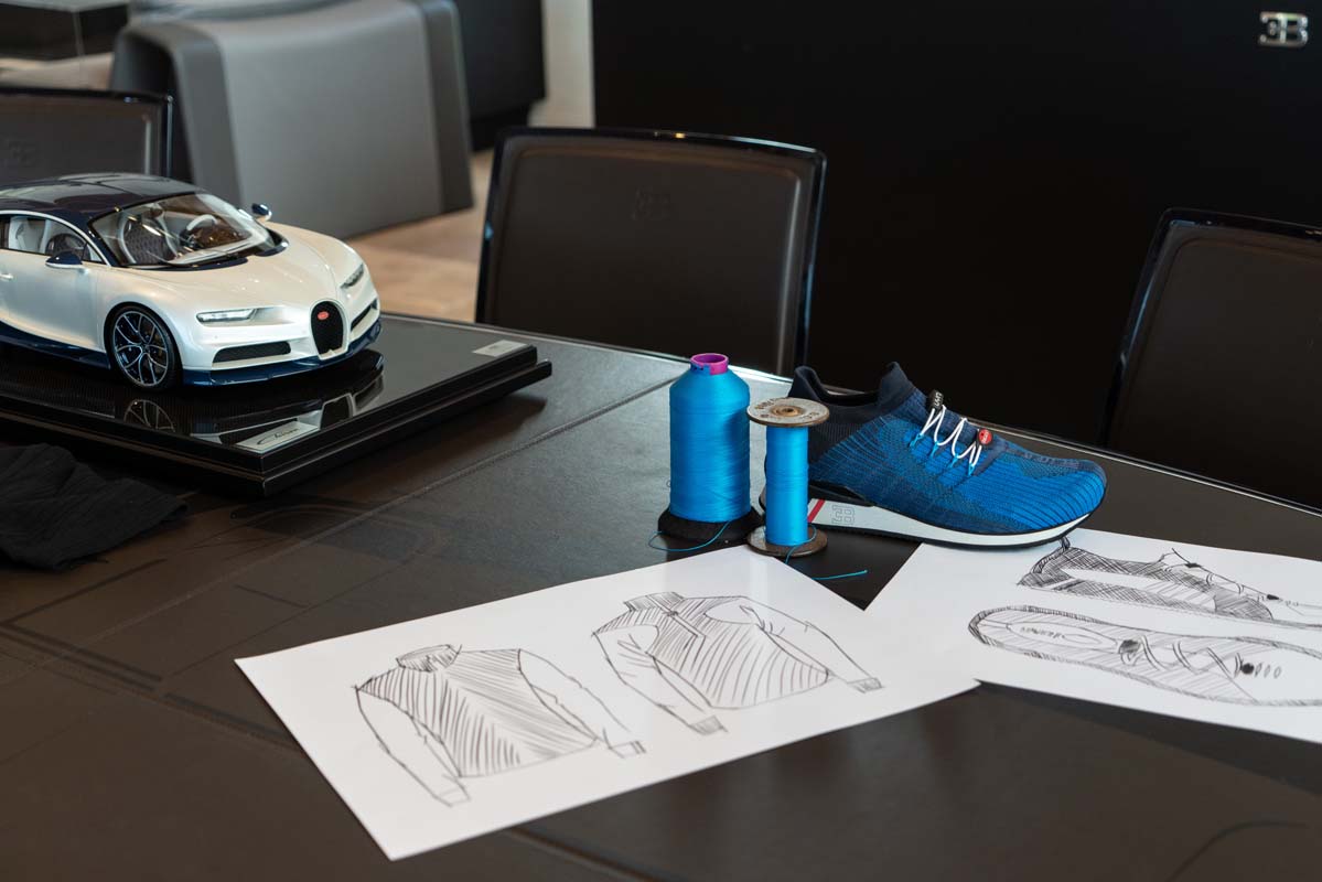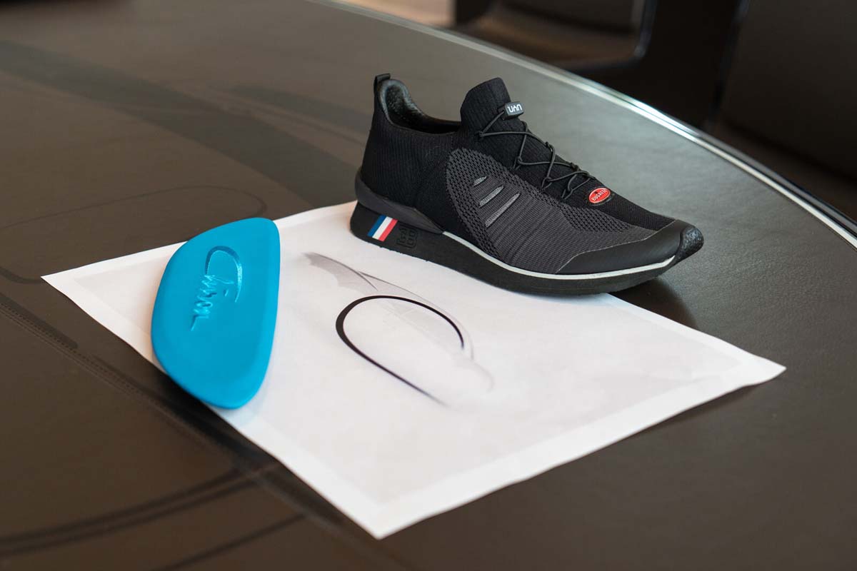The iconic Bugatti C-line is a key source of inspiration is, which UYN has reinterpreted in jackets and shirts through its patented Ergomotion technology. The unique C-shaped shoulder design that follows the shoulder blade profile guarantees complete freedom of movement. In the shoes made of 3D-knit fabric with zero seams, the C-line has been integrated into the upper half, becoming a powerful ventilation system. The “UYN for BUGATTI” collection comes in the colors black, white and the famous Bugatti Blue, the later reflects Bugatti’s identity and pays homage to the Molsheim-based company’s racing heritage.