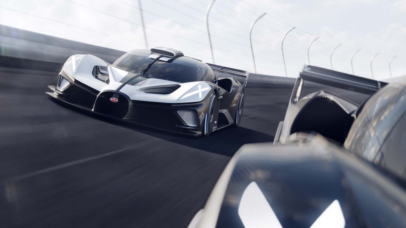 The numerous air ducts and delicate front end are more reminiscent of aerodynamically sophisticated Formula 1 cars than a hyper sports car, and they dominate its look. The Bolide sits very low to the ground, with an air intake scoop on the roof and an ultra-sporty seat position. In combination with the striking rear diffuser, the dominant rear wing results in high downforce and therefore also optimum traction. As with other Bugatti vehicles, the design team opted for a color split, although the proportion of visible carbon parts is greater than in other models.