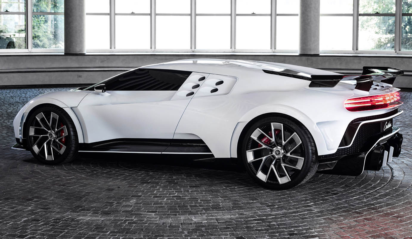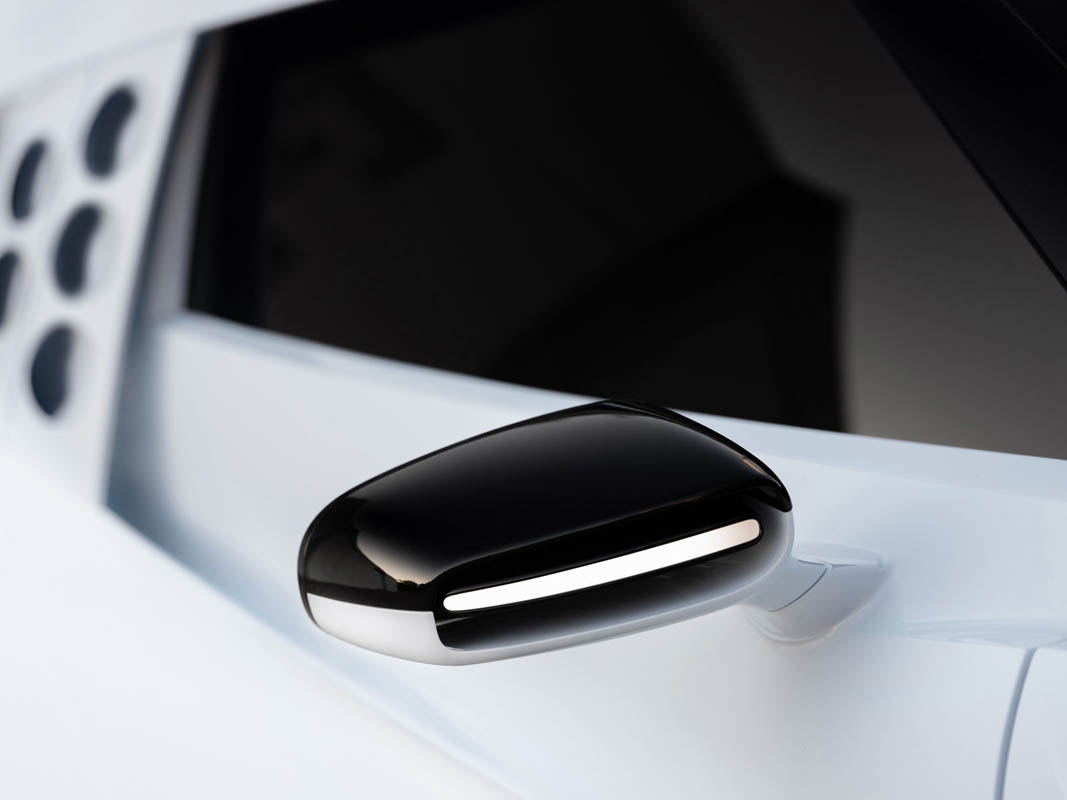 “We incorporated the wedge-shaped design in the development process but we took it in a new direction,” says the designer. Instead of copying the classic Italian wedge in which the muscle runs from the rear to the front wheel, suggesting a dynamic leap forward, Bugatti strikes out on a new path in the Centodieci. The otherwise dominant Bugatti line, the C line on the B pillar, gives way to a new design Significantly smaller than the Chiron, five round air inserts – positioned in the form of a diamond – ensure sufficient air intake for the iconic 16-cylinder engine. In this way, Bugatti has brought forward the visually leaping wedge of the EB110 SS into a new millennium.