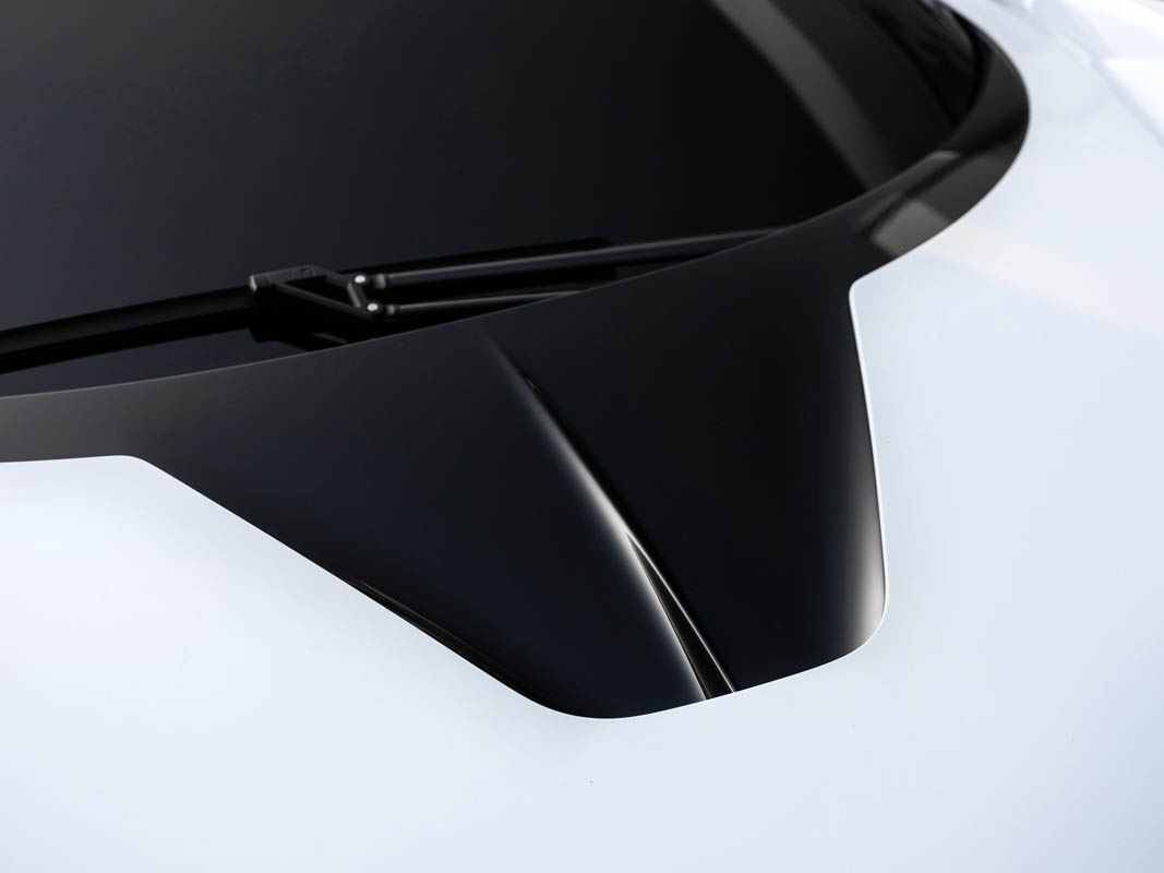 The flat, horseshoe-shaped radiator at the front reveals its depth only from the side view, with the newly developed, deep-seated front spoiler and the three-section air intakes providing a perfect match. The front of the Bugatti Centodieci drops very low. The iconic Bugatti horseshoe has been reduced accordingly, while the Bugatti logo Macaron sits on the hood, which is interrupted at the centre by a black element. “This allowed us to rekindle memories of EB110,” says Achim Anscheidt. The optimised front section with the extended front splitter and the airflow through the hood further improve the car’s aerodynamics.