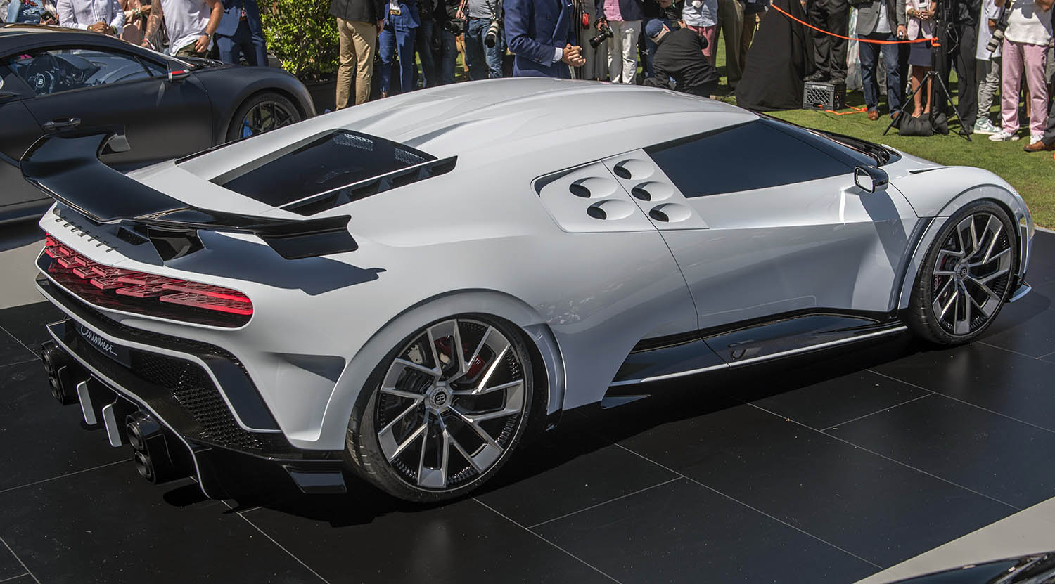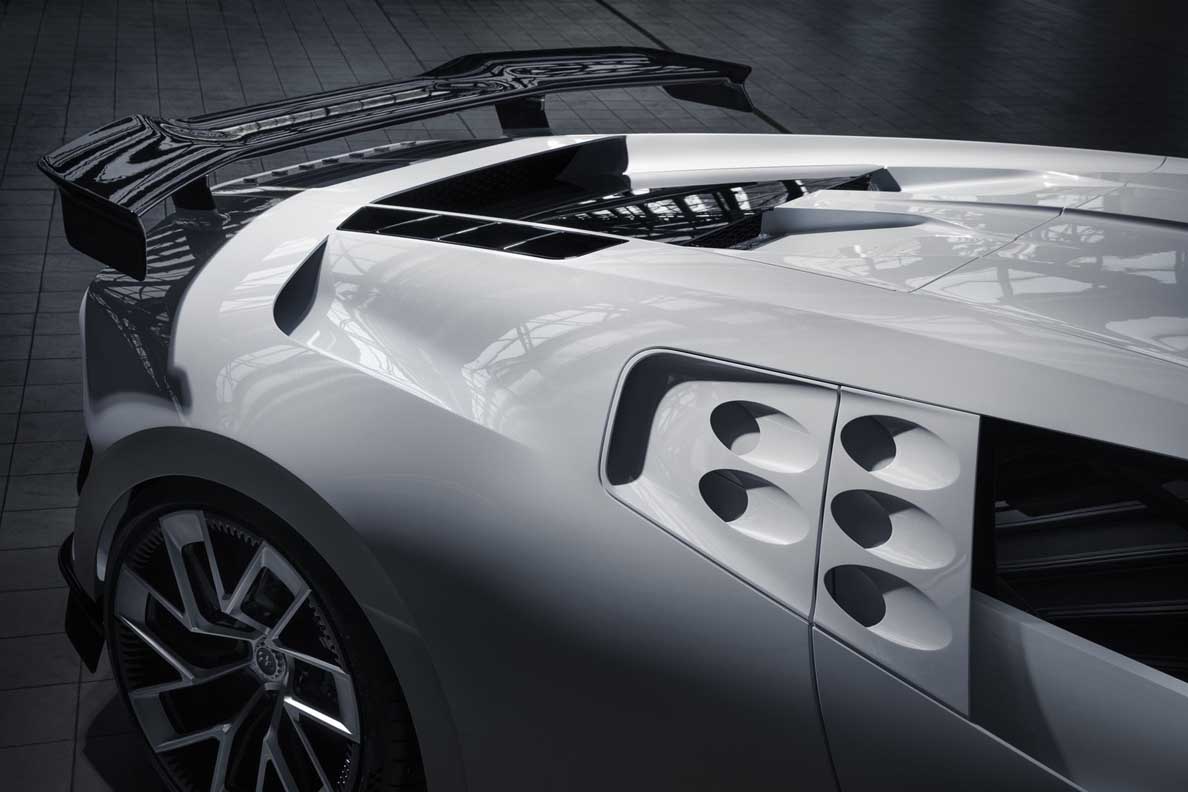 “We faced a number of technical challenges in terms of the development and design of the Centodieci,” says Achim Anscheidt. The EB110 is a very flat, wedge-shaped and graphically quasi two-dimensional super sports car of the late 1980s. “Transporting this classic look into the new millennium without copying it was technically complex, to say the least. We had to create a new way of combining the complex aerothermal requirements of the underlying Chiron technology with a completely different aesthetic appearance.”