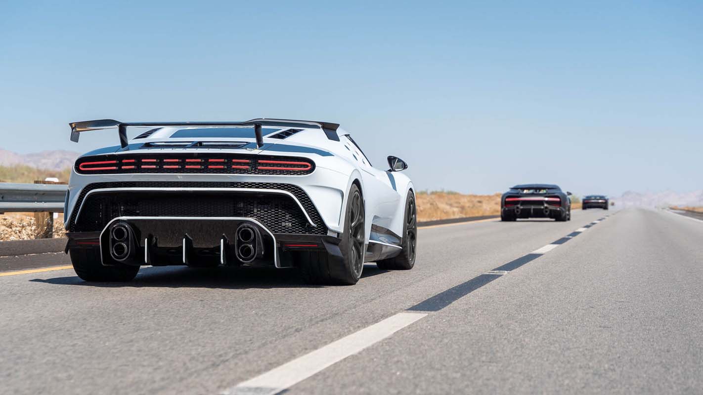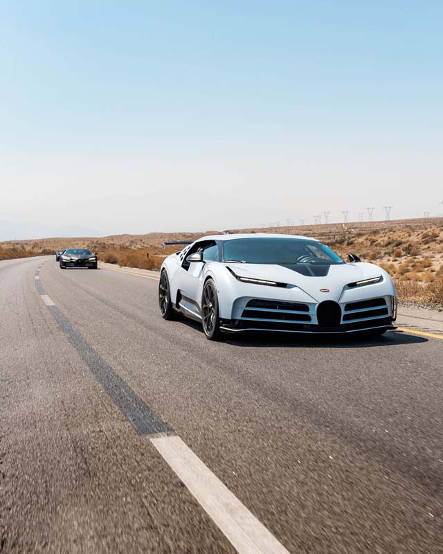 Departing from California, the convoy drives 800 kilometers (500 miles) to Arizona, travelling along the Central Pacific Highway by the Pacific Ocean and passing through San Diego. In total, there are eight hyper sports cars from Molsheim on the road– the Bugatti Centodieci is followed by three Chiron Pur Sports2 and four Chiron Super Sports3. With the exception of the white Centodieci, matte black film protects the bodywork of the extraordinary and exclusive fleet of vehicles.