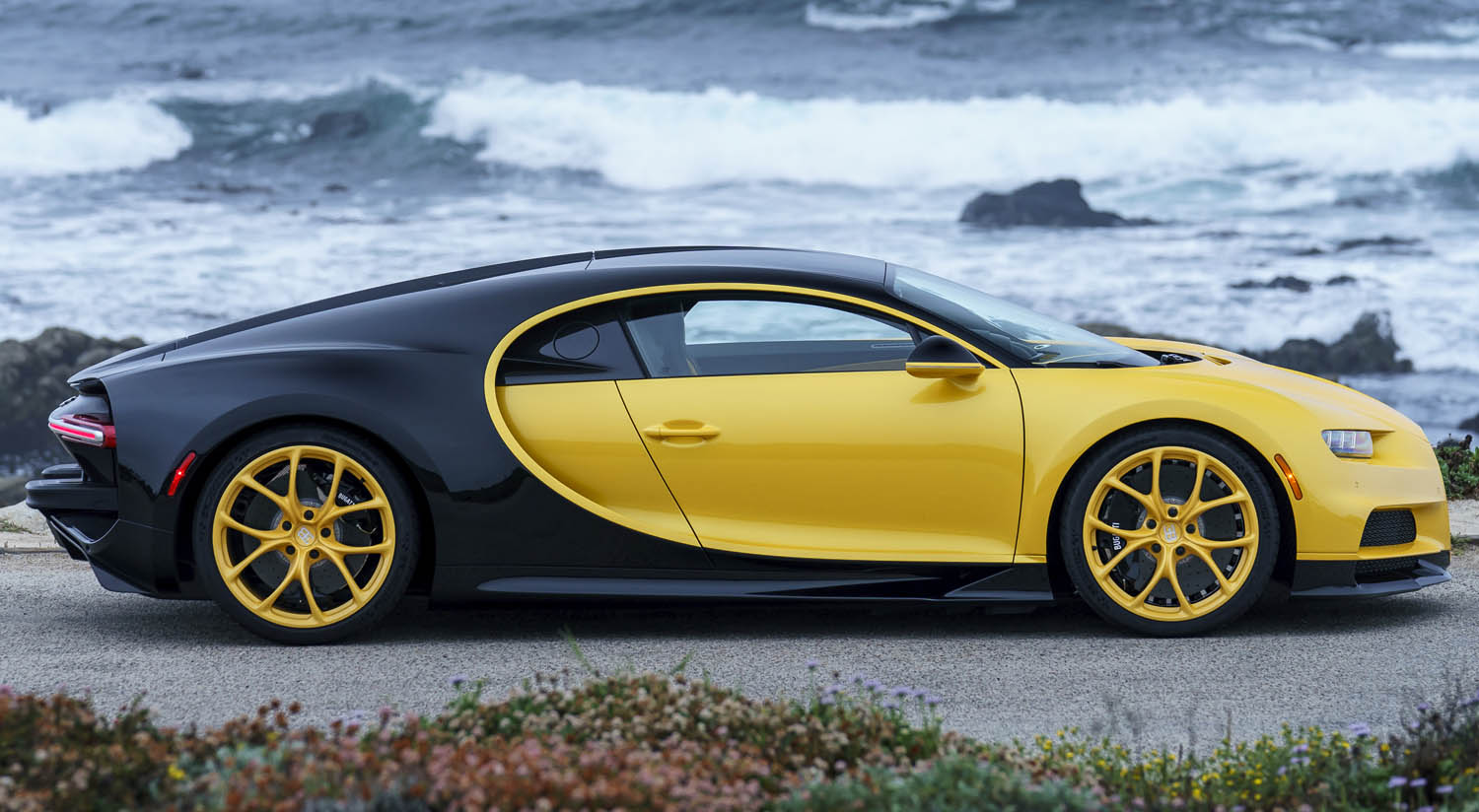At a standstill, the Bugatti Chiron already has emphatic proportions, not least as a result of its larger wheels.