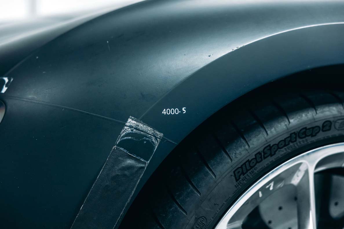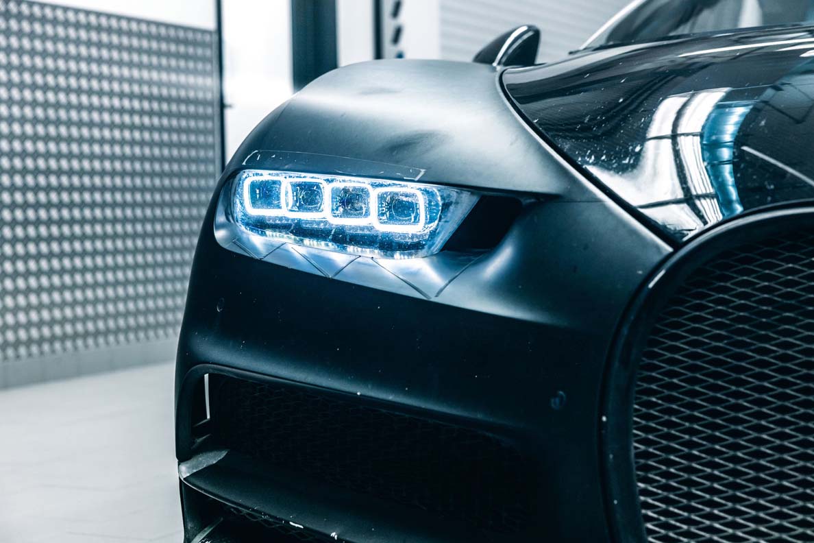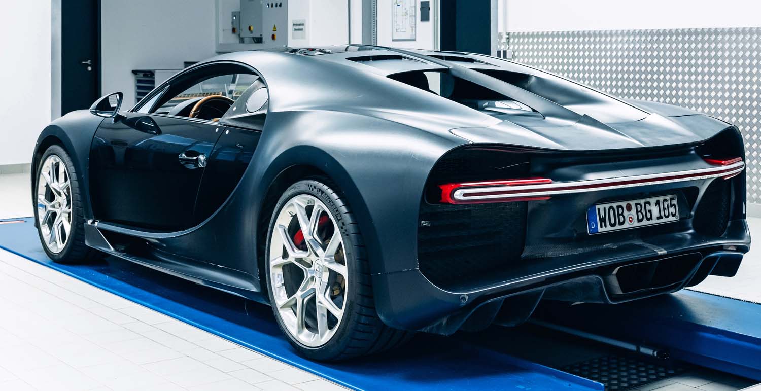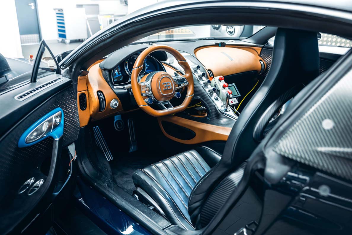 A matte surface, adhesive strips, scratches, and minor grazes bear witness to a tough life. This Bugatti Chiron was never spared. For more than eight years, this vehicle served as a piece of work equipment, a tool used to develop the Chiron to production maturity. And it served this purpose on multiple continents and in a variety of climate zones. The 4-005, as it is referred to internally, is the first Chiron to be driven in the USA, performs drifts in the snow in Scandinavia, completes laps on the high-speed ring in Nardò, passes heat tests in South Africa, and is subjected to the afterburner of a Eurofighter Typhoon. The hyper sports car serves the Electrics and Electronics development department as a test lab on wheels and in no way spared right to the end.