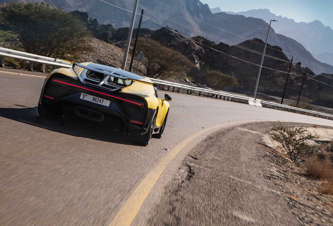 Goodbye Dubai, hello Hajar! Bugatti test driver and Le Mans winner Andy Wallace made the most of his time following the launch of the new Bugatti Chiron Pur Sport1 in Dubai to take an extended trip to Hatta.