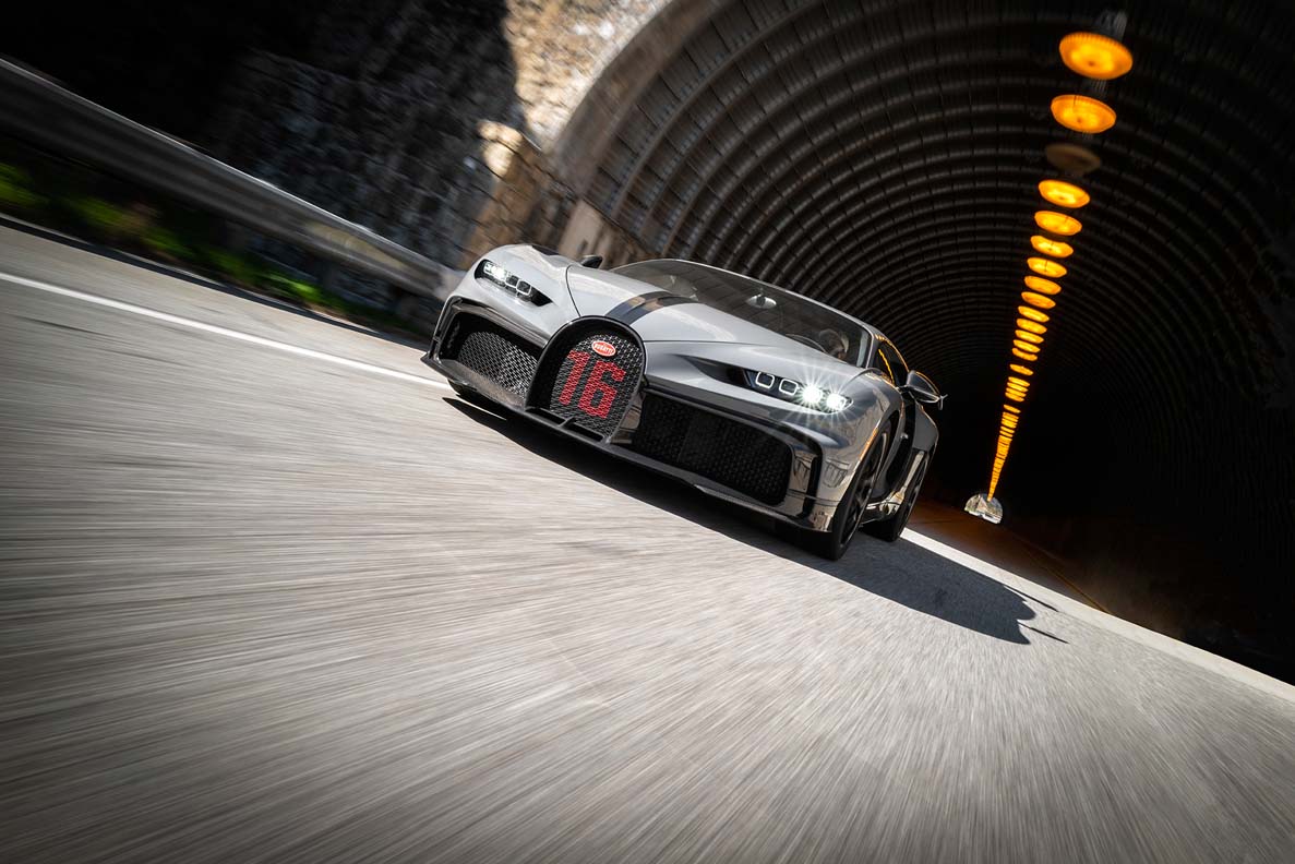 Bugatti has been producing sports cars homologated for public roads for over 110 years. In the past, vehicles such as the Type 13 and Type 35 have claimed countless victories at international hill climbs and road races. The Chiron Pur Sport is no exception to this long-standing tradition. The new model is an uncompromising hypersports car for exactly those winding roads – a new aerodynamic configuration generates more downforce while the lower weight increases agility. Even travelling at average speeds will stimulate all the senses thanks to a close-ratio transmission, high-performance tyres with a new material mix geared towards extreme grip as well as an agile chassis and suspension setup. By contrast with the Chiron Super Sport 300+, the record-breaking car that exceeded the threshold of 300 miles per hour for the first time, the Chiron Pur Sport focuses on extraordinary, tangible performance throughout the entire range of speeds.