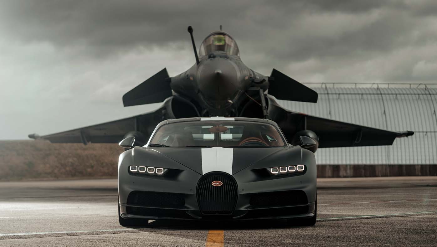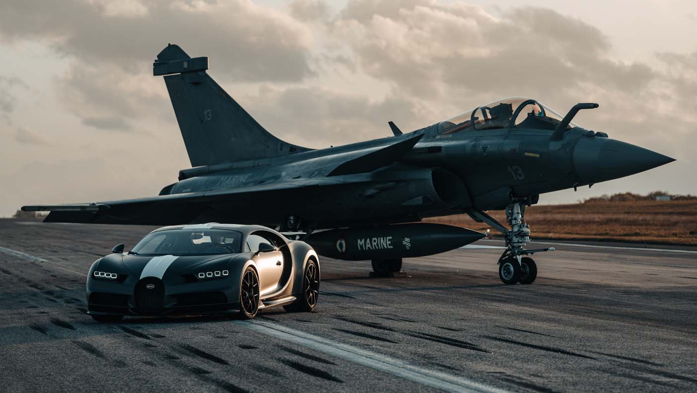 The comparable Bugatti Chiron Sport and the Dassault Rafale Marine