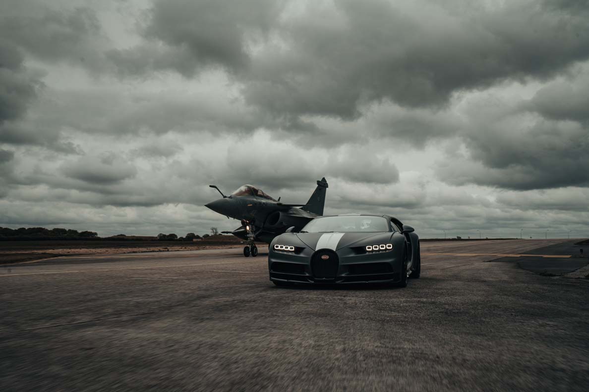 Two professionals occupy the cockpits – Bugatti’s pilote officiel Pierre-Henri Raphanel in the Chiron Sport and frigate captain Etienne in the Rafale Marine. They and their teams have been preparing for this day for weeks. The tension leading up to the start is immense for everyone involved.