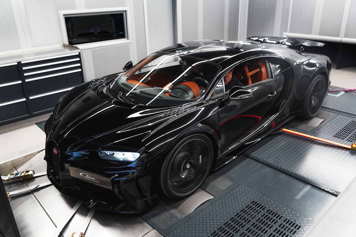 Bugatti uncompromisingly designed the Chiron Super Sport for optimized aerodynamics to deliver a high top speed – without compromising luxury and comfort. From the front splitter to the rear diffuser, every centimeter of the bodywork is designed for top speed. In comparison to the Chiron, the Chiron Super Sport, which is the ultimate grand tourer, offers massive downthrust at top speed thanks to newly developed aerodynamic efficiency and what’s known as a long tail. Bugatti also thoroughly overhauled the 8.0-liter W16 engine, increasing its power output to at least 1,600 PS. For more direct handling, especially at top speed, Bugatti developed the chassis anew – steering systems and dampers offer the feeling of a solid and tighter connection to the vehicle. Overall, the modifications resulted in greater power, more grip, and more direct handling, even at well above 400 km/h – all of which can now be checked and optimized on the dynamometer anytime.