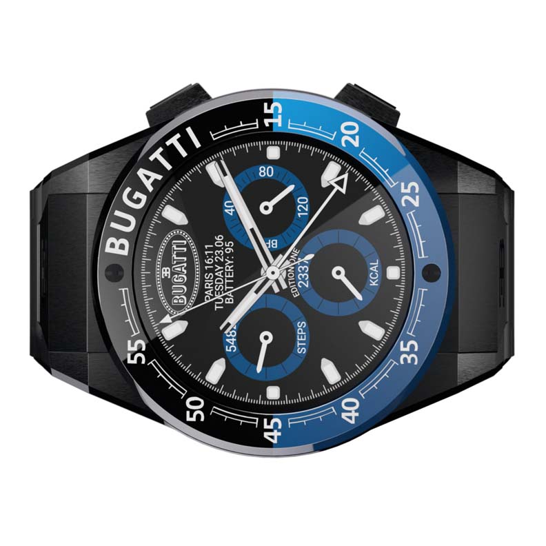 Each of the new Bugatti smartwatch models offers an innumerable amount of technical features, among them 90 different sports, your level of oxygen in the blood, your acceleration, and specifically for the Bugatti watch a GPS tracking mode. To quickly adjust to new technologies and customer demands, VIITA has developed its own software.