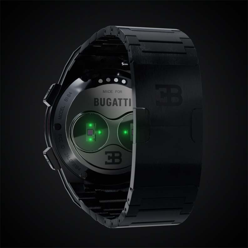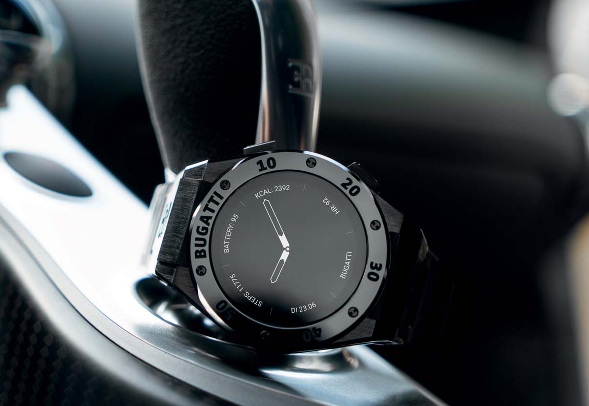 The GPS sensor has been especially developed for the Bugatti smart-watch and houses among the watch’s 1,000 intricately packaged components, which provides an entirely new level of accuracy and resolution rate. Wearers taking it to the racetrack can have their lap times and acceleration values logged automatically by the GPS sensor. This feature is applied for the first time in the world in a smartwatch to correspond Bugatti’s uniquely fast and powerful hyper sports cars.