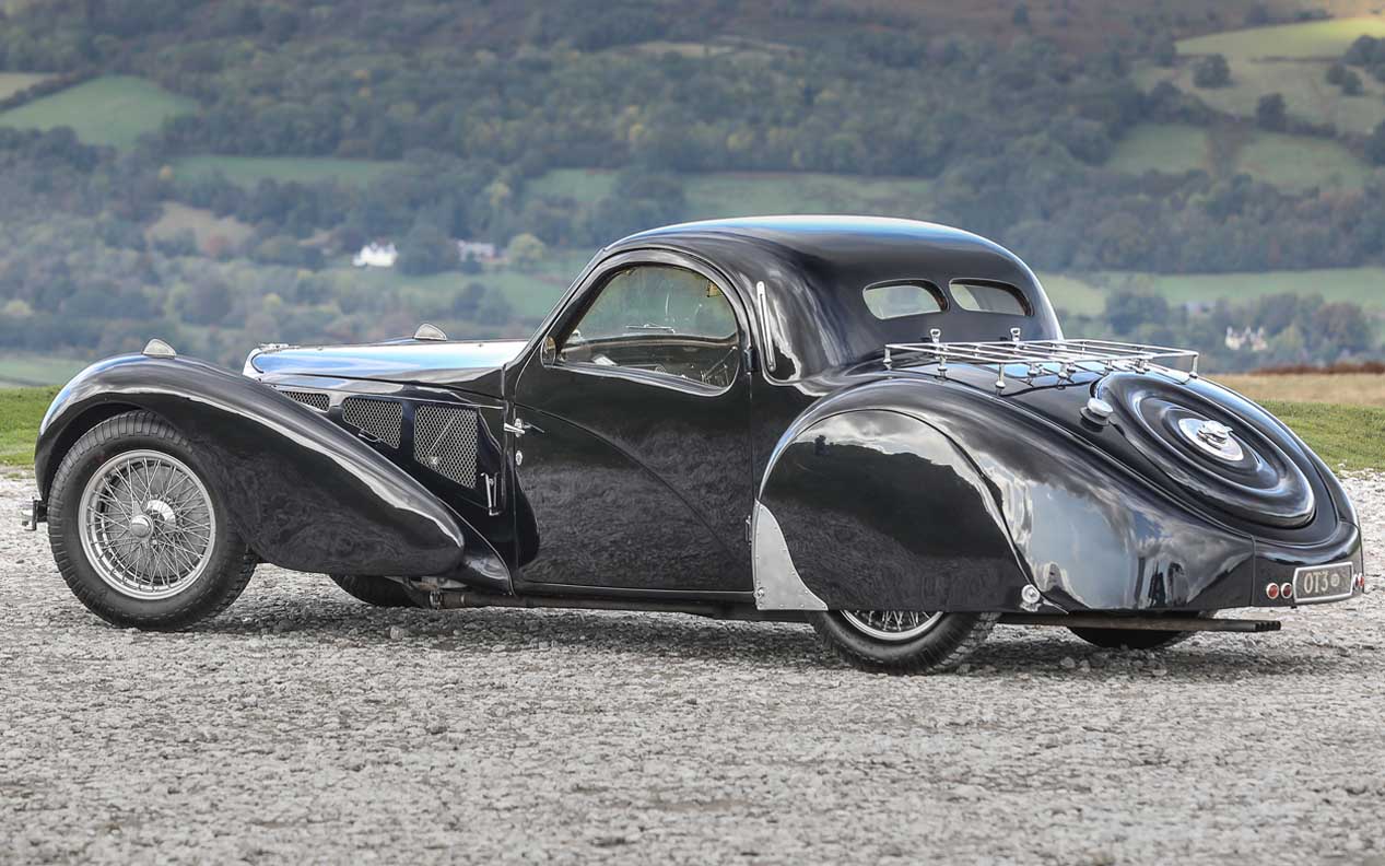 The Bugatti Type 57S Atalante is one of only 17 cars that Jean Bugatti fitted with his sensational Atalante body. The power unit is a turbocharged 3.3-litre eight-cylinder engine that delivers an output of up to 175 PS in the Type 57S.