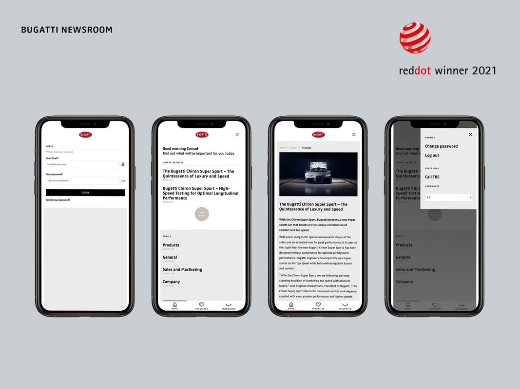 “We are delighted with this recognition of the Bugatti Newsroom. It shows us that we have been able to convince not only media representatives but also international design experts with the Bugatti Newsroom,” says Tim Bravo, Head of Communications at Bugatti. “Great usability and design were the main focuses of the further development.”