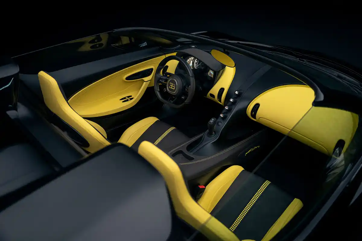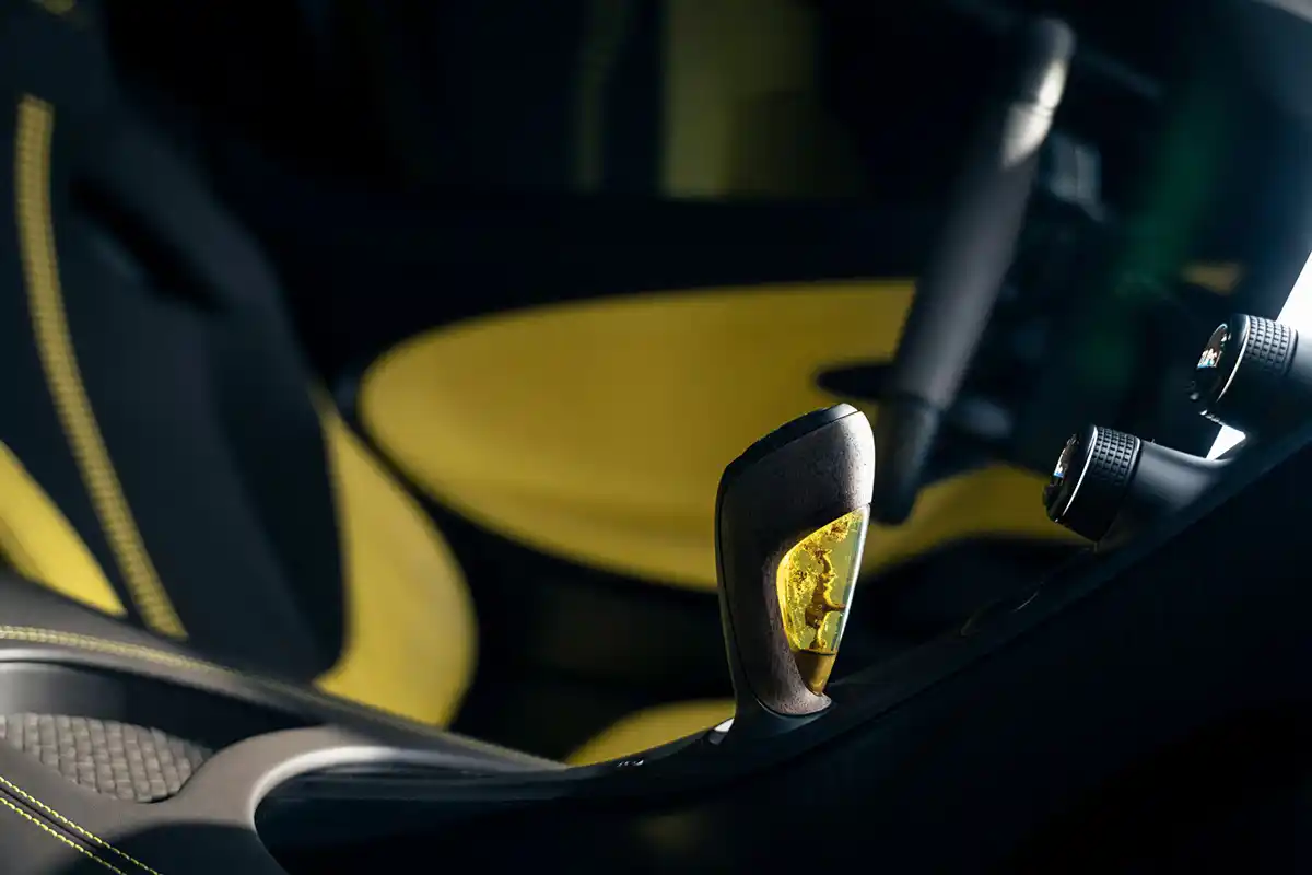 Achim concludes: “The W16 Mistral is a special moment in the history of Bugatti; the kind of car that will be seen on the lawns of top Concours d’Elegance events for decades or even centuries. We created a timeless interior for this car, including the introduction of an intricate woven leather used on newly designed door panels, meticulously tested and produced to Bugatti quality standards. And in a nod to the W16 Mistral’s illustrious forebears, like the Type 41 Royale, the gear shifter – machined from a solid block of aluminum – features a touch of wood and an amber insert with Rembrandt Bugatti’s famous ‘dancing elephant’ sculpture locked within.”