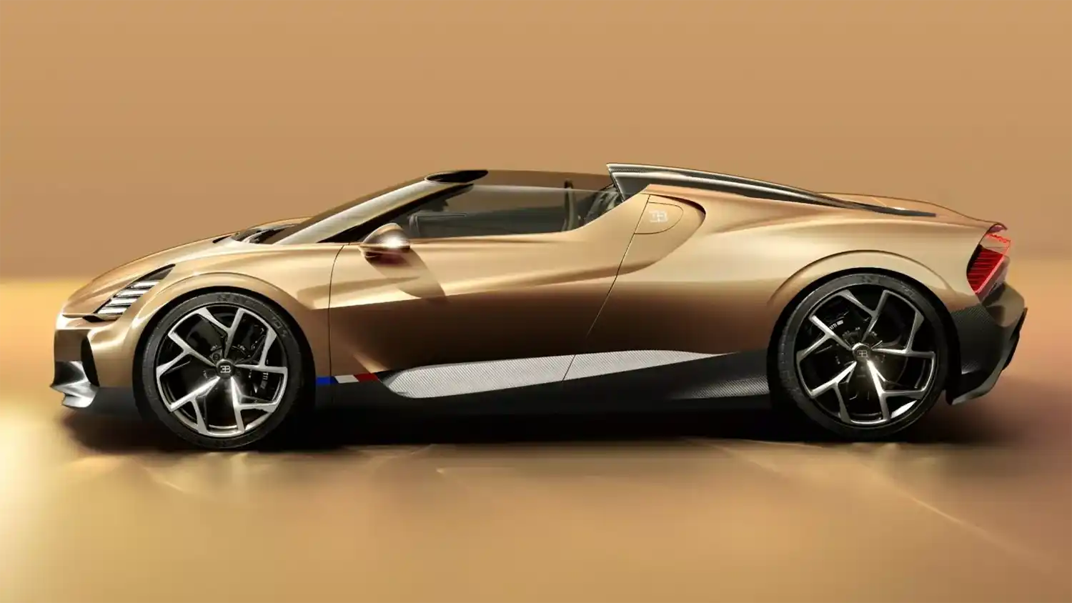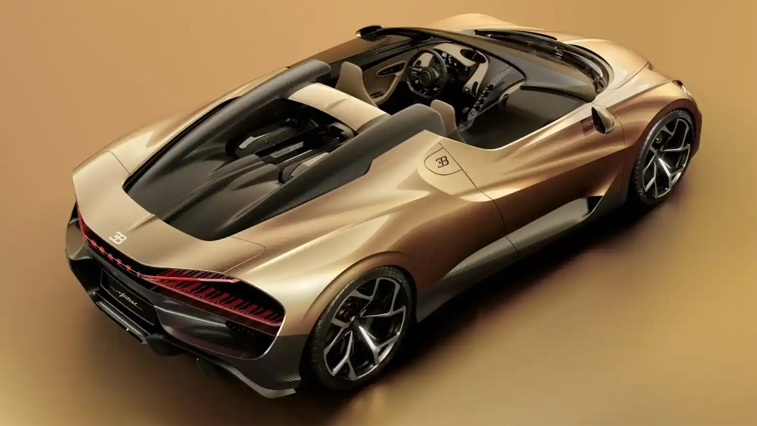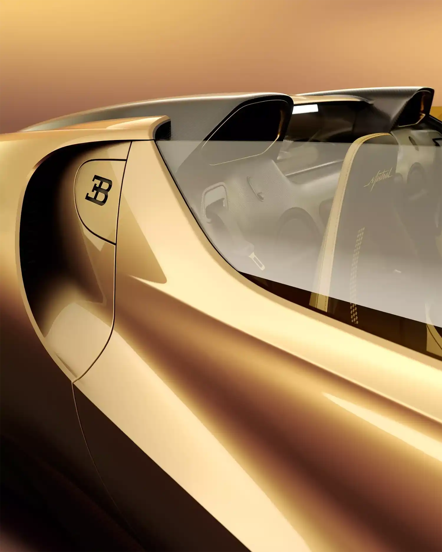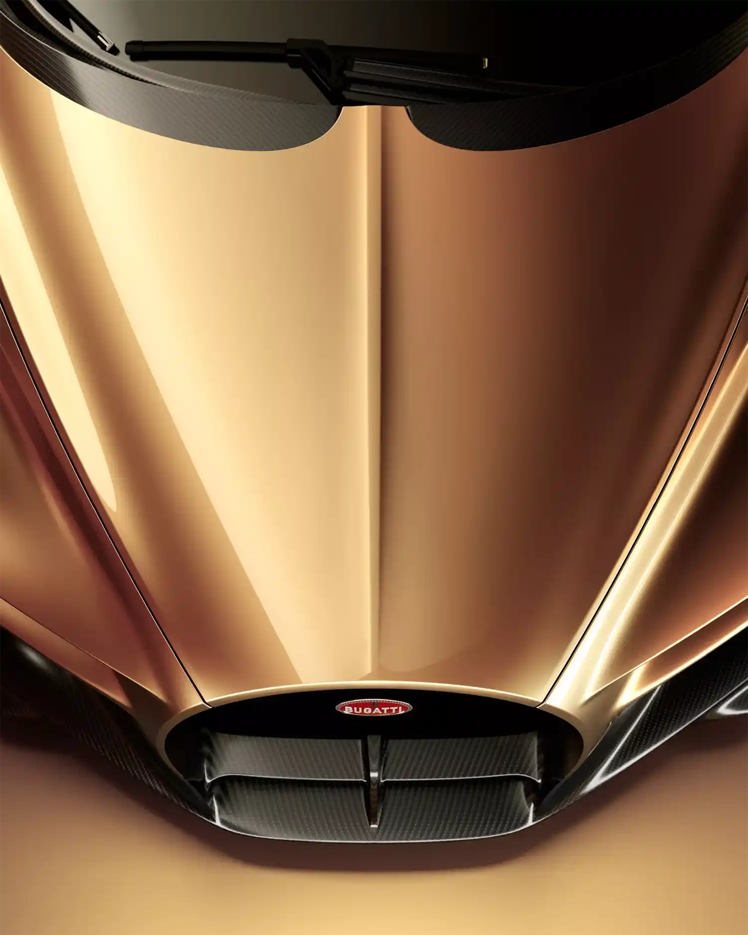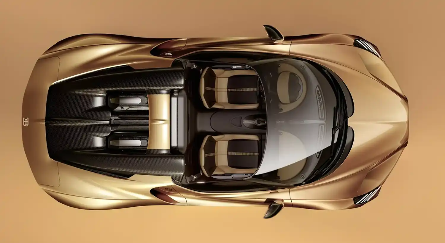 As for the open-top cabin, Bugatti opted for two leather tones, also reflecting the golden theme once more, with generous doses of carbon fiber and a golden finish for the proud EB logo sitting atop the steering wheel.