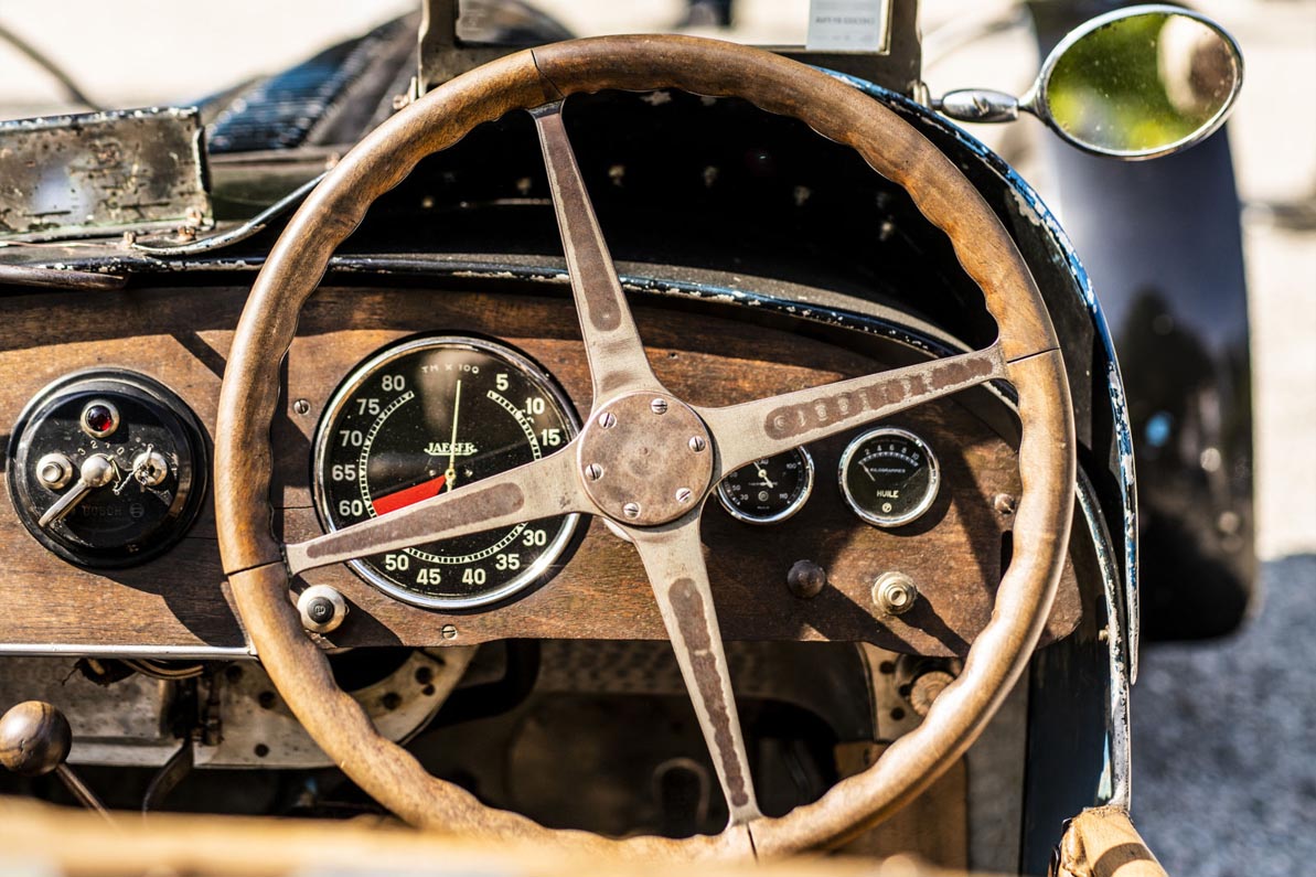 The Stelvio Cabriolet was the first Type 57 to be installed with a supercharger by Bugatti. Bugatti named it after the Passo dello Stelvio – otherwise known as the Stelvio Pass – as this steep mountain pass was effortlessly summited by its powerful engine. The bodywork comes from the exclusive coachbuilder, Gangloff, based in Colmar, France – just a stone’s throw from Bugatti’s headquarters in Molsheim. The Cabriolet’s art deco bumpers are worthy of note, being the only known example of this Bugatti to be adorned with such details.