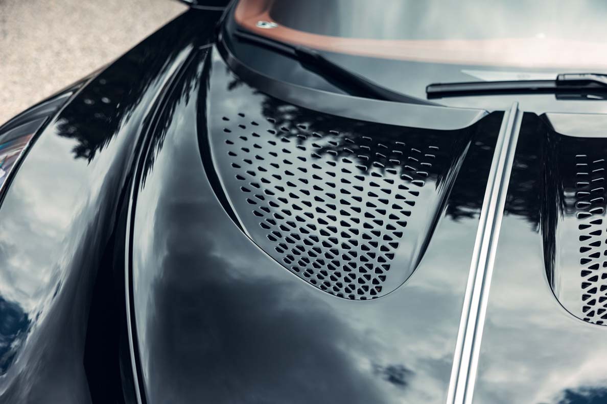 The fascinating, sculptural, and commanding appearance of this black automobile which disappeared is forever unique. Jean Bugatti had a real flair for shapes and developed saloons and coupes of dramatic beauty. With the Atlantic, Jean Bugatti created a masterpiece. For the reinterpretation, the designers had to cast their minds back and seek to understand the automobile, the bygone times, the technology, the materials, and the creators – and then update this work to the 21st century.