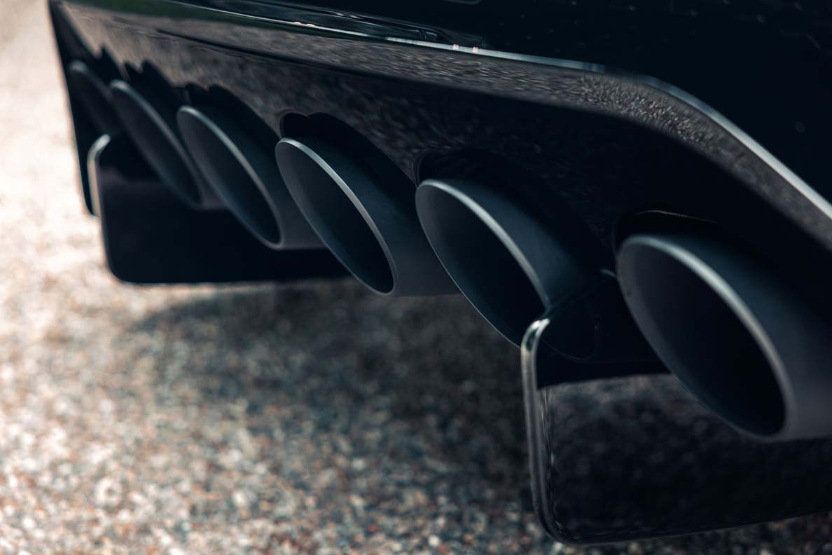 The rear is dominated by an elegant rear light which for the first time features a single-piece surround with no joints. Six individual tailpipes serve as a nod to the vehicle’s well-known template. A newly developed parametric design at the front and rear means the body parts appear to be sealed, but they are actually air-permeable. This gives the La Voiture Noire its incomparable coupe shape.