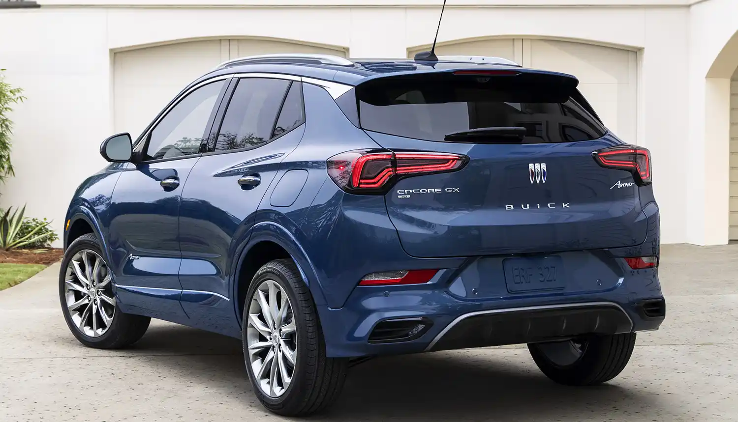 On the exterior, the Buick Encore GX Avenir includes a unique Avenir grille, unique clear lens LED tail lamps, 19-inch Avenir-specific wheels, chrome front and rear bumpers accents and black carbon metallic body side molding.
