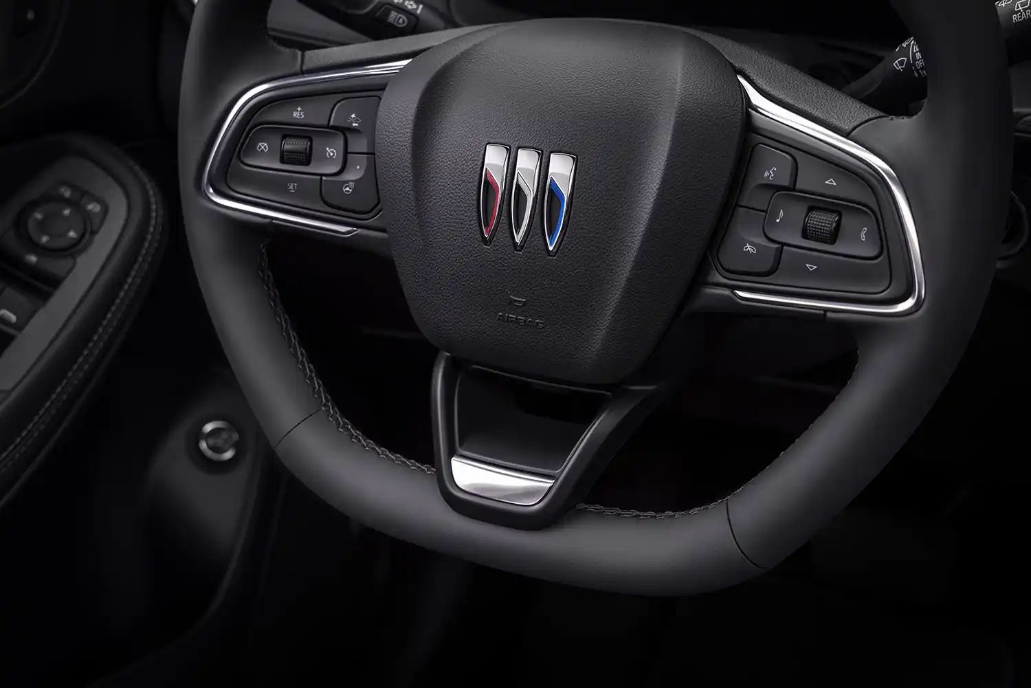First seen on the Buick Wildcat EV concept, the new front fascia design language features a dynamic, forward-leaning front-end that comes to a crescendo at the brand’s new body-mounted tri-shield logo. An updated modern grille pairs with new signature winged LED headlamps to create a distinctive visual presence. New 18-inch and 19-inch wheel options are also available.