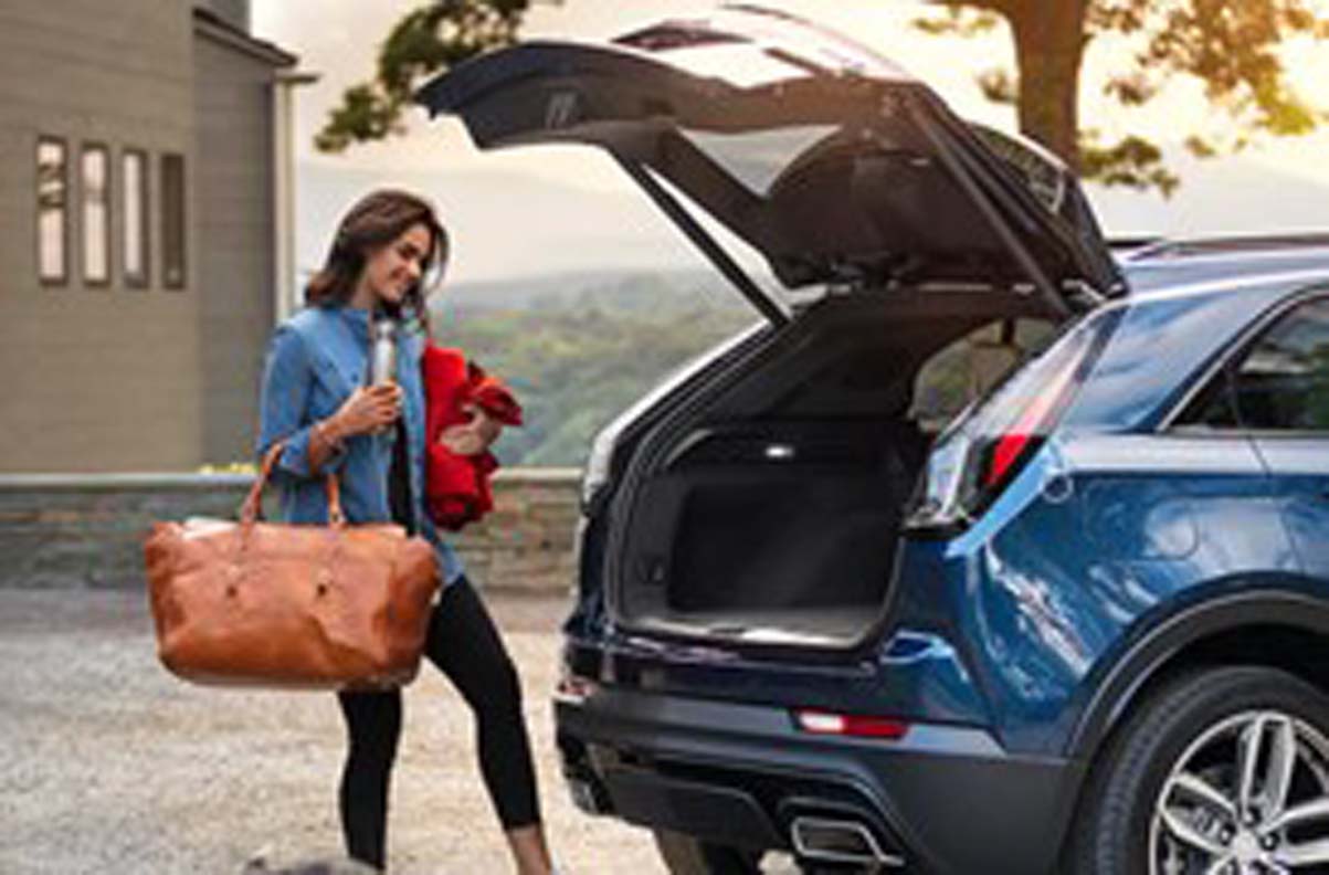 Accessing storage has never been easier thanks to the available hands-free power liftgate. The hands-free liftgate with logo projection and programmable height lets drivers open and close their liftgate with a simple kicking motion below the bumper. An illuminated logo projection will appear on the ground to show users where to ‘kick’. Cadillac XT4 owners can also operate their liftgate using the buttons on their key fob.