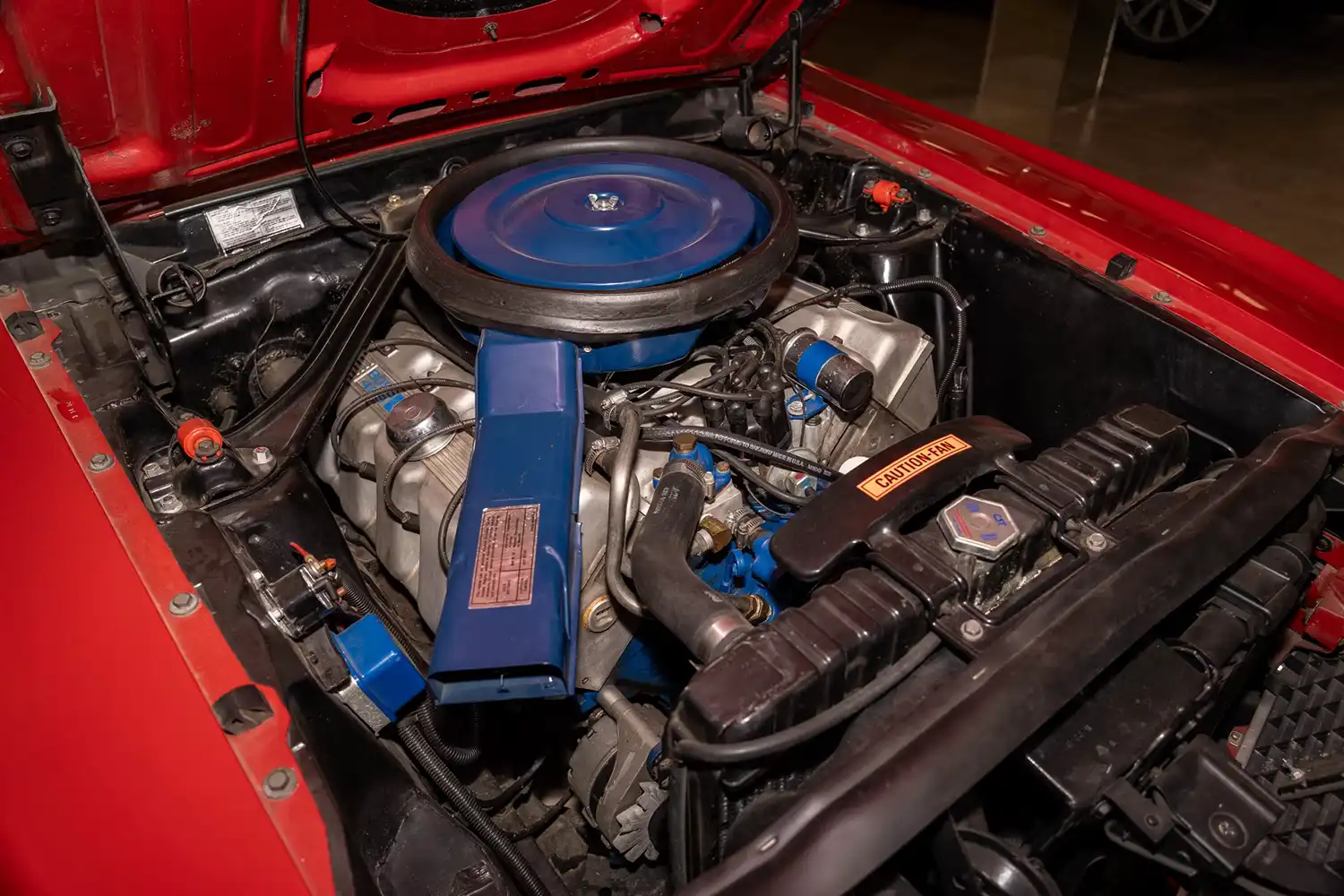 At the heart of this 1969 Ford Mustang Boss 429 is the very engine it was created to homologate for NASCAR racing: the formidable 429 CI V-8. This engine features a Holley 4-barrel 735 CFM carburetor for precise fuel delivery. It boasts an aluminum intake manifold and semi-hemispherical combustion chambers, designed for maximum airflow and power. Internally, it features four-bolt main caps and a forged steel crank and connecting rods, built for extreme durability.