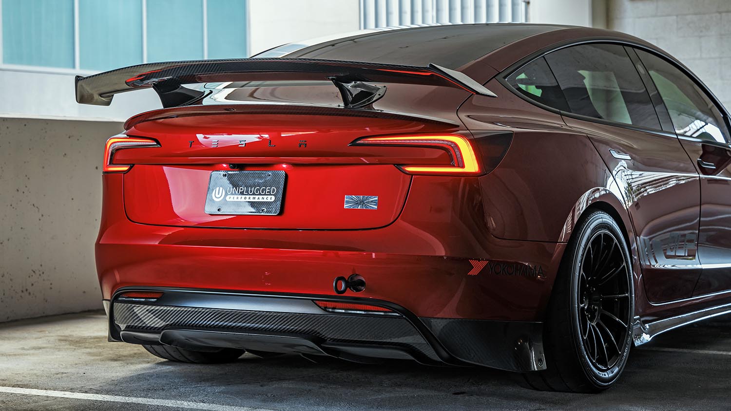 The Tesla Model 3 ASCENSION-RR Wing by Unplugged Performance provides 525 lbs of downforce for track enthusiasts. This carbon fiber upgrade improves high-speed stability and grip, offering a professional aerodynamic solution for all 2024+ Model 3 variants.