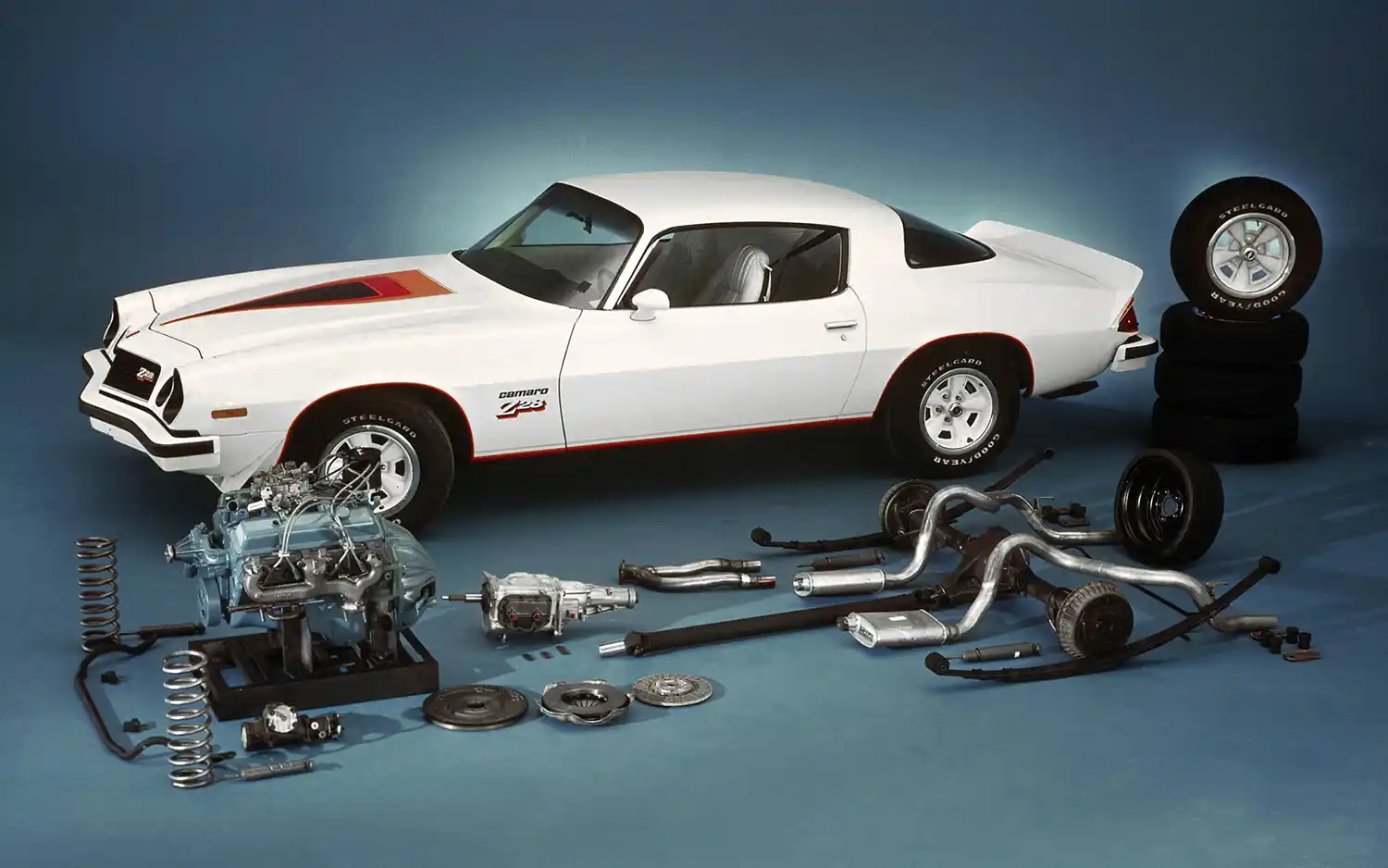 Dubbed “Super Hugger”, the second-generation Camaro was developed without the rush of the first generation and benefited from a greater budget justified by the success of the first generation. Although it was an all-new car, the basic mechanical layout of the new Camaro was familiar, engineered much like its predecessor with a unibody structure utilizing a front subframe, A-arm and coil spring front suspension, and rear leaf springs. The chassis and suspension of the second generation were greatly refined in both performance and comfort; base models offered significant advances in sound-proofing, ride isolation, and road-holding. Extensive experience Chevrolet engineers had gained racing the first-generation led directly to advances in second-generation Camaro steering, braking, and balance. Although it began its run with a number of high-performance configurations, as the 1970s progressed, the Camaro grew less powerful, succumbing, like many production cars of the era, to the pressures of tightening emissions regulations and a fuel crisis. Major styling changes were made in 1974 and 1978; 1981 was the final model year for the second-generation Camaro.