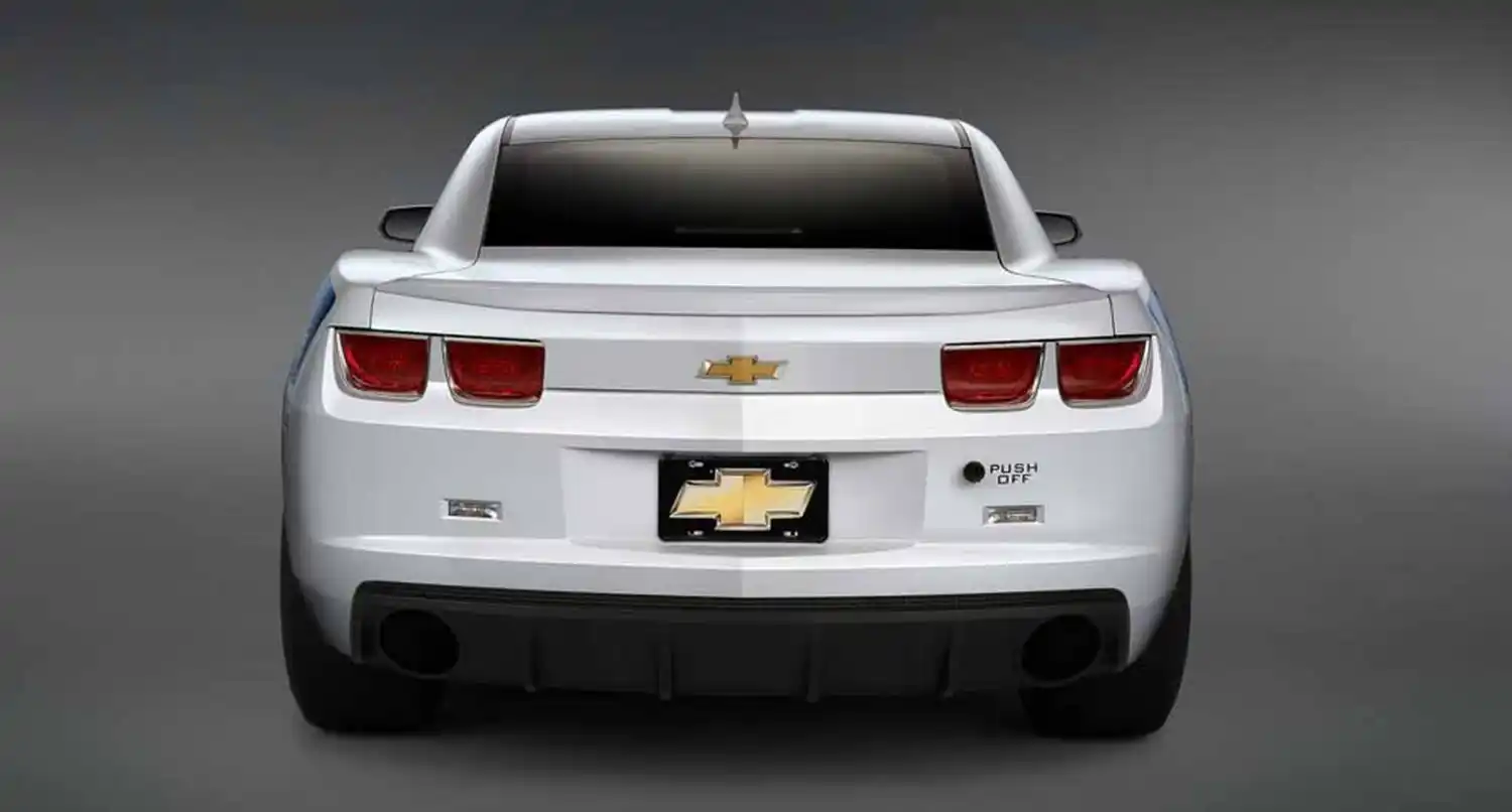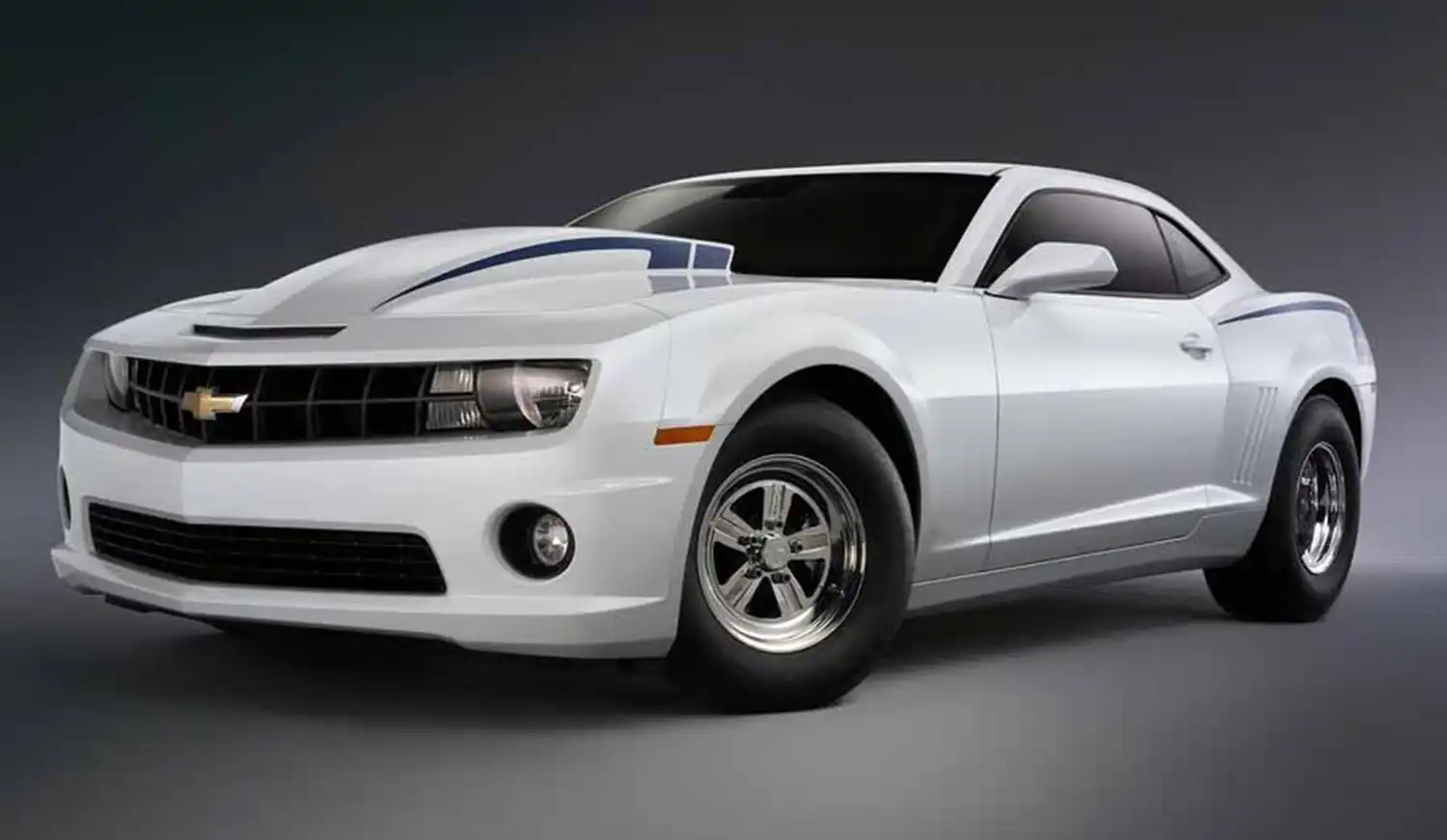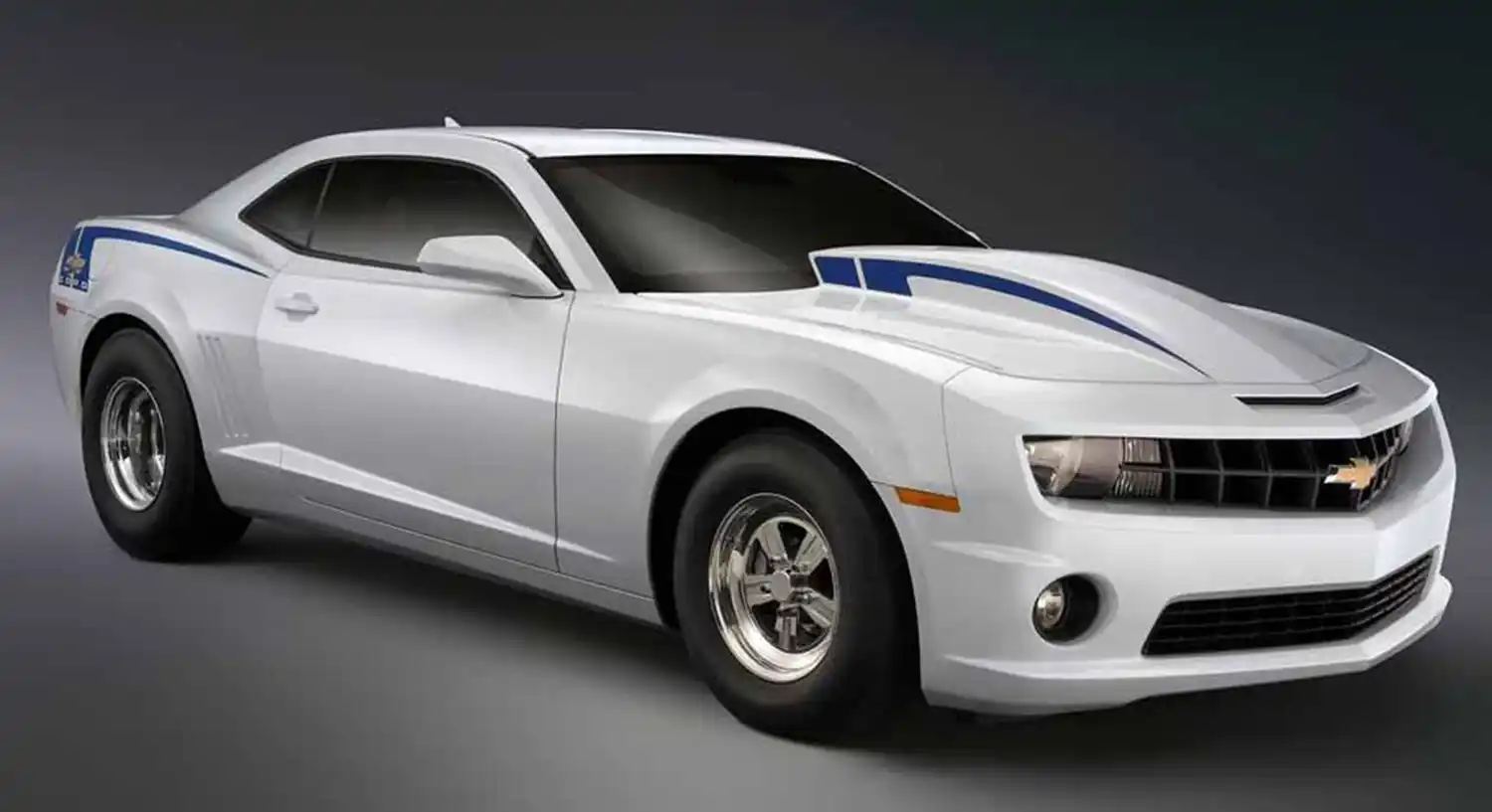 A COPO graphics package similar to the one introduced on the concept vehicle available in Metallic White, Semi-Gloss Black, Inferno Orange Metallic and Chevy Racing Blue