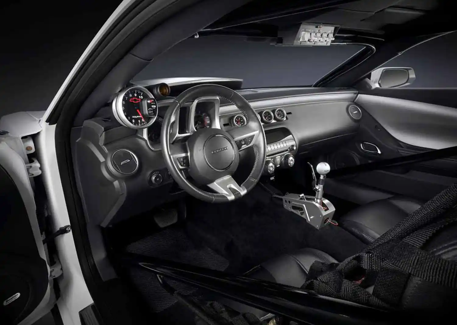 The COPO Camaro is designed to NHRA racing specifications including a solid axle and a full chrome moly roll cage. Inside, most of the standard sound deadening and power accessories have been deleted in order to optimize weight for NHRA racing. Also included is a pair of racing bucket seats (no rear seat), a safety harness for the driver, a competition floor shifter and Chevrolet Performance gauges.