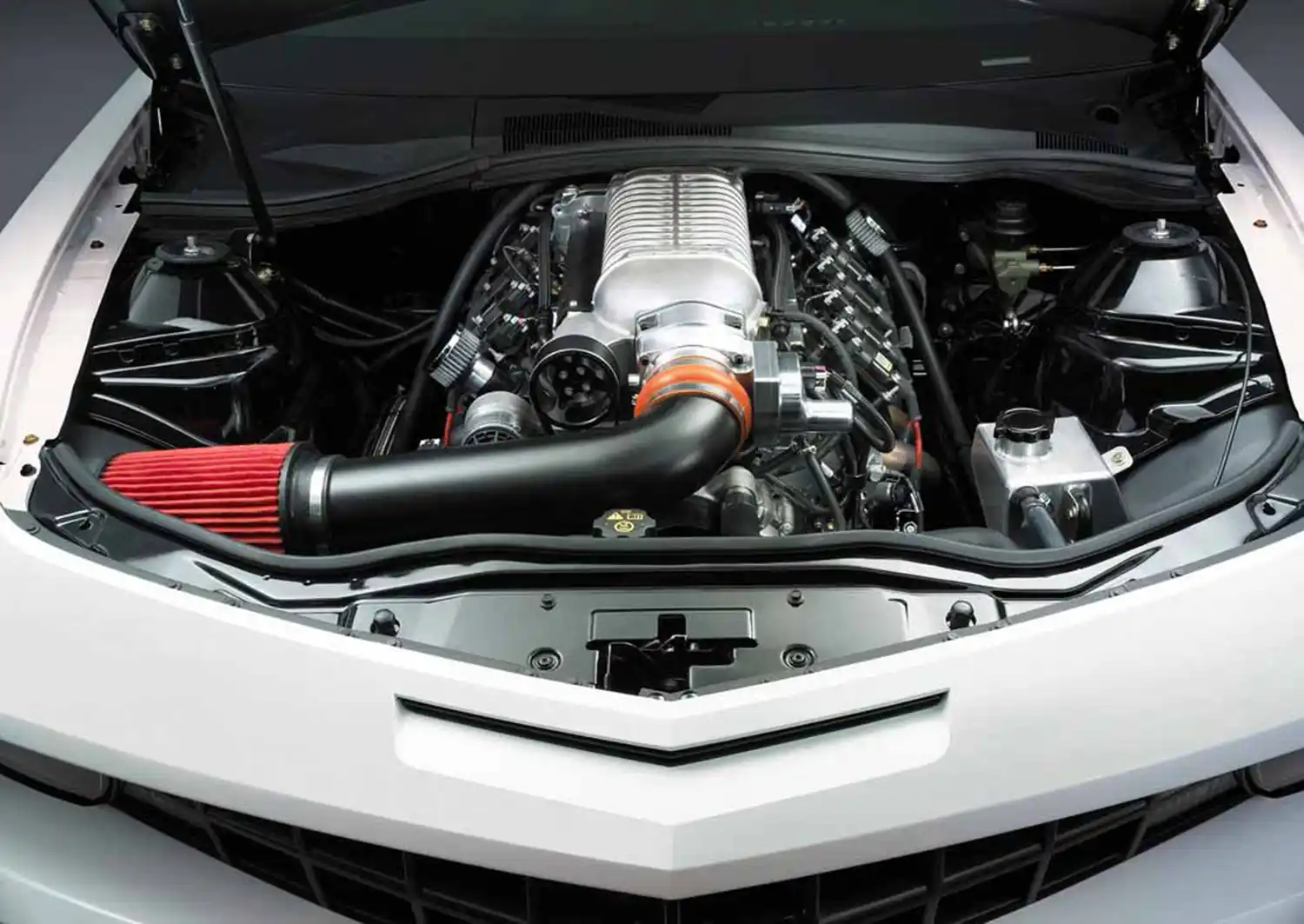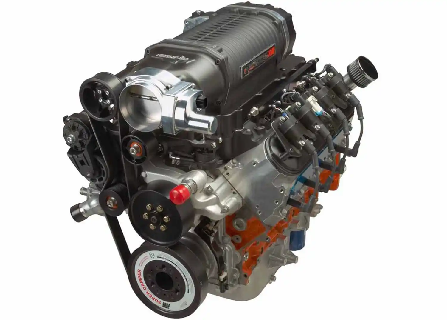 A supercharged, LSX-based 327 (5.3L) V-8 featuring a 2.9L supercharger