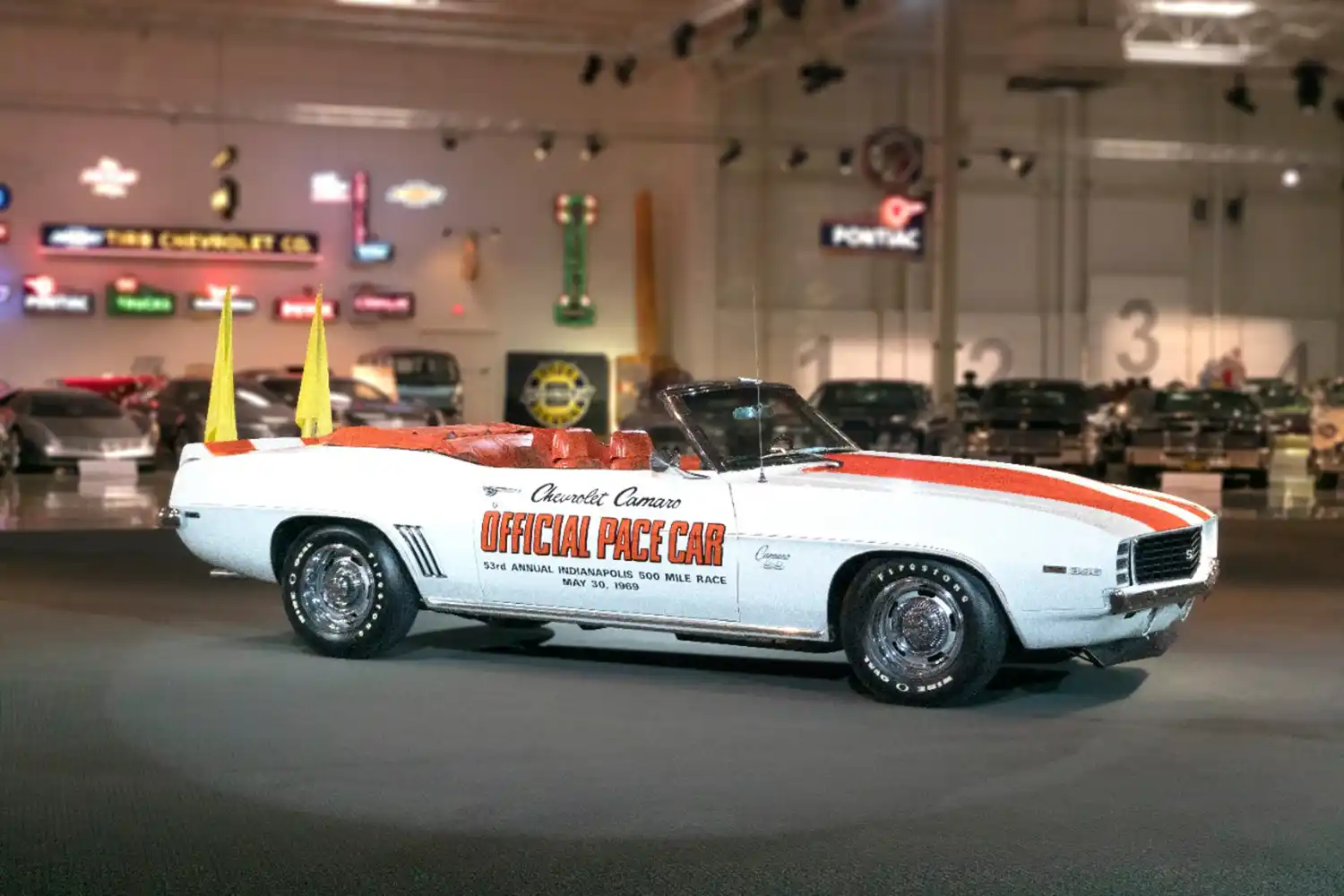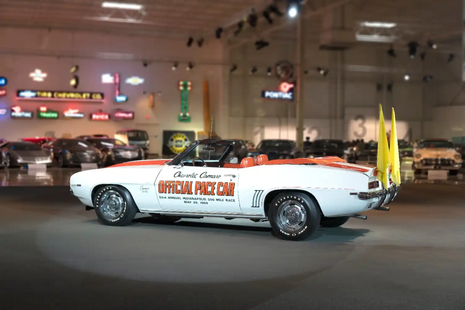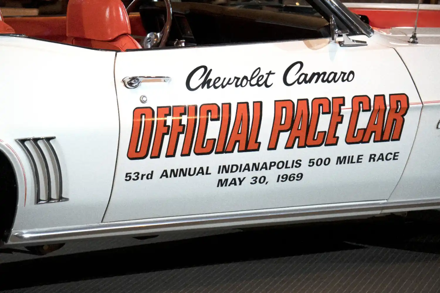 The Camaro returned to Indy just two years after pacing the race in 1967. With its striking white and “hugger orange” color scheme, the 1969 Camaro SS/RS has become one of the most popular Indy Pace Cars of all times. This particular car in the GM Collection is not one of the actual cars that Paced the race, but rather is considered a Pace Car Replica. It was one of 3,675 “Z11” vehicles built by Chevrolet.