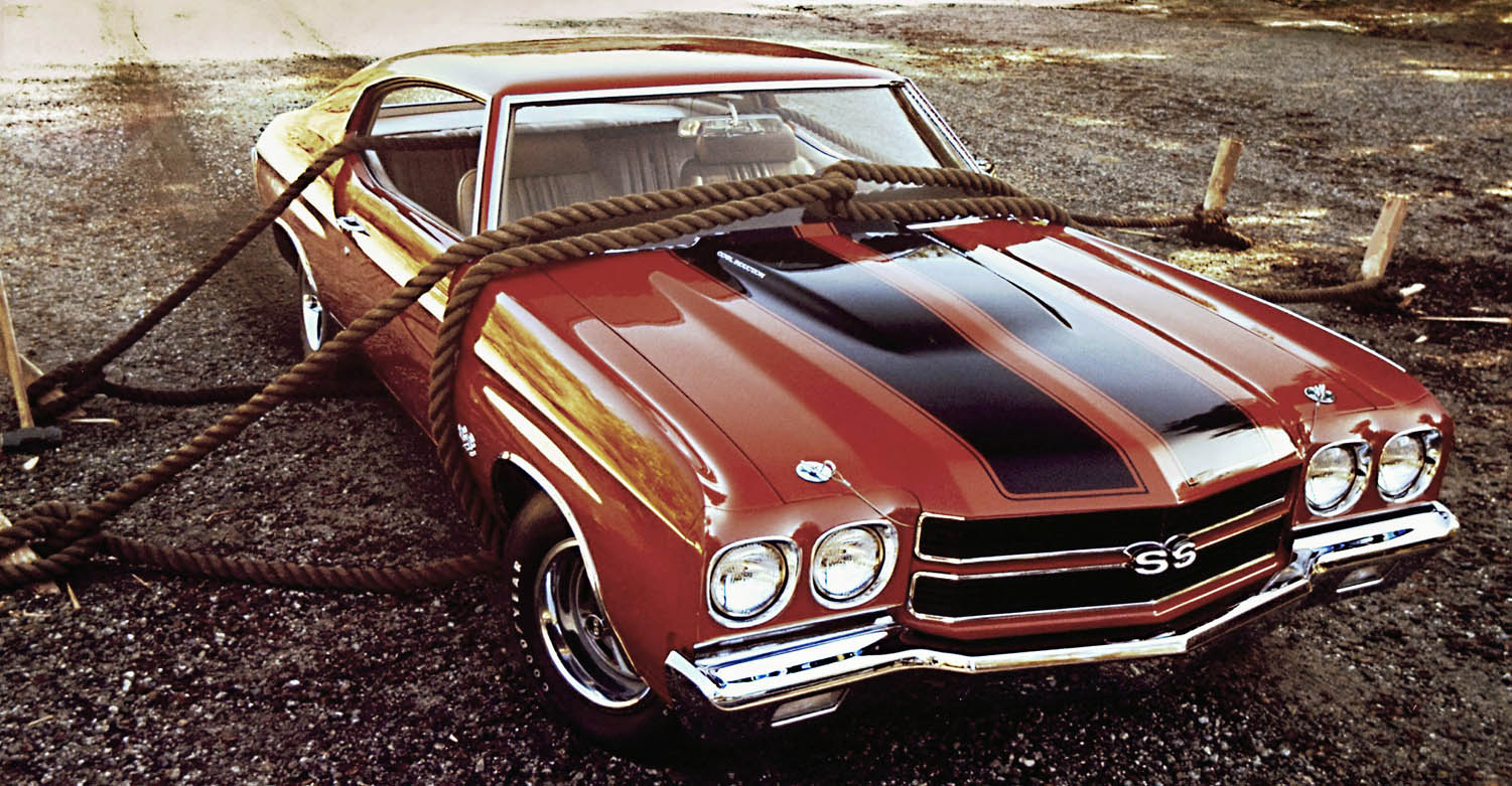 The muscle car era reached its peak in 1970, as Chevelle SS power climbed to record highs. With the optional 450-hp, LS-6 454 big-block V-8 engine, it could top 100 mph in 13.3 seconds.