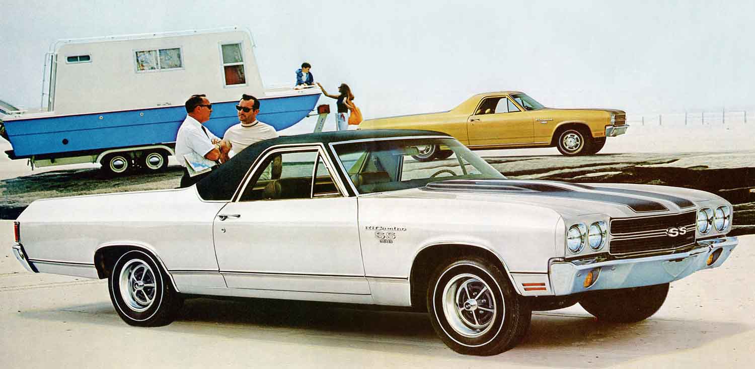 Based on the midsize Chevy Chevelle — and fully sharing in that car line’s multitudinous power options — the 1970 El Camino SS pickup combined pickup utility with muscle car looks and power.