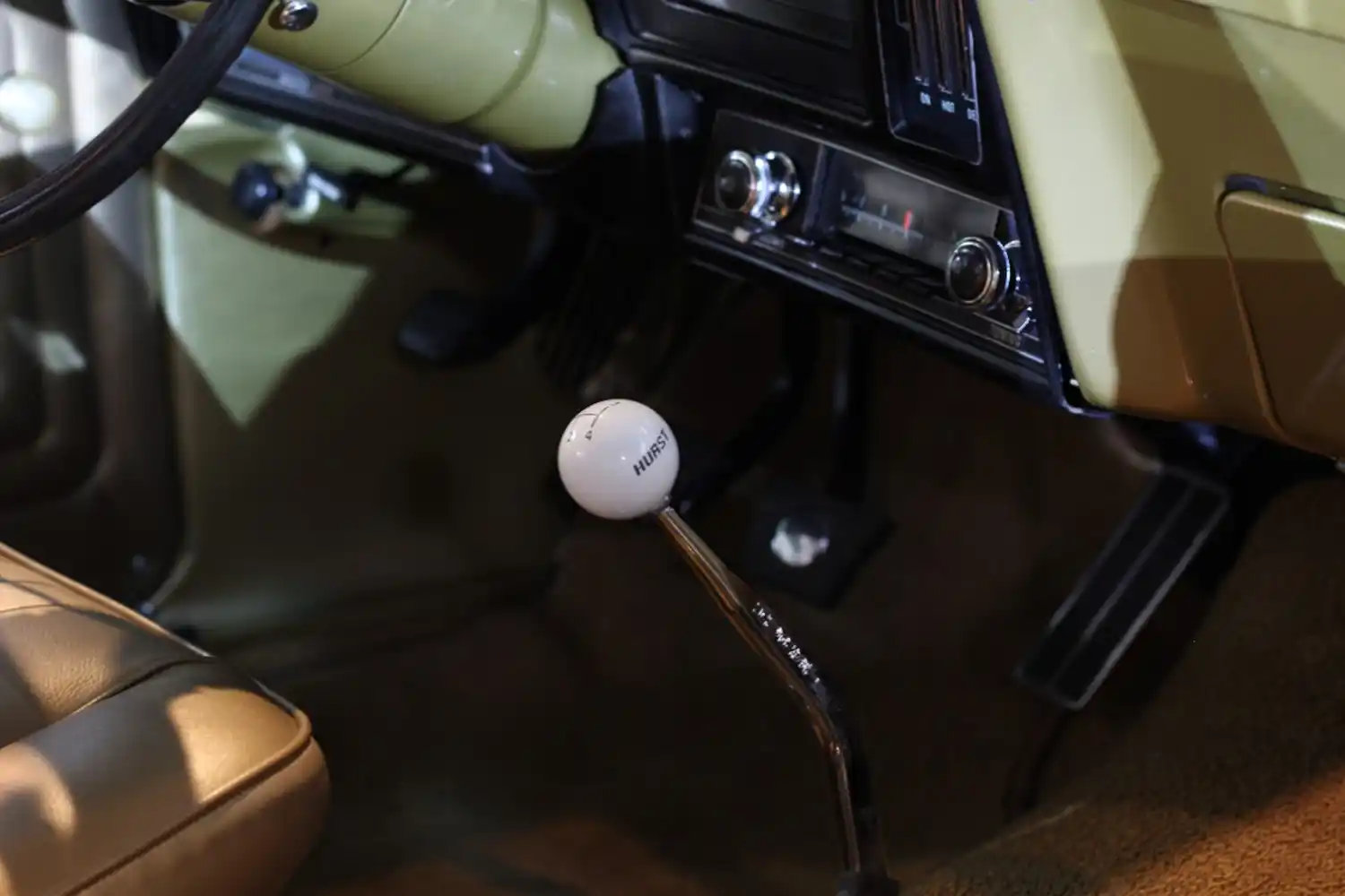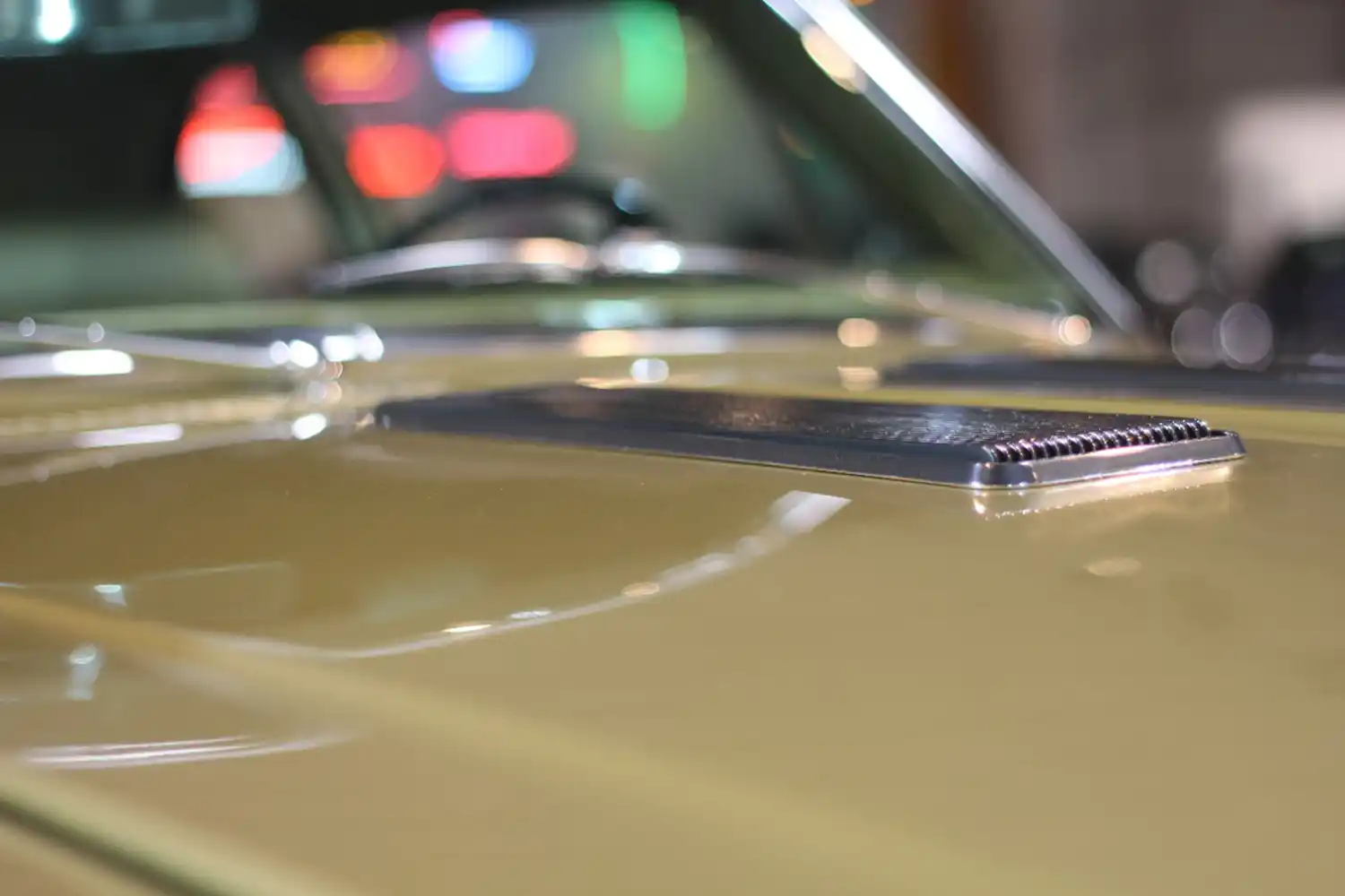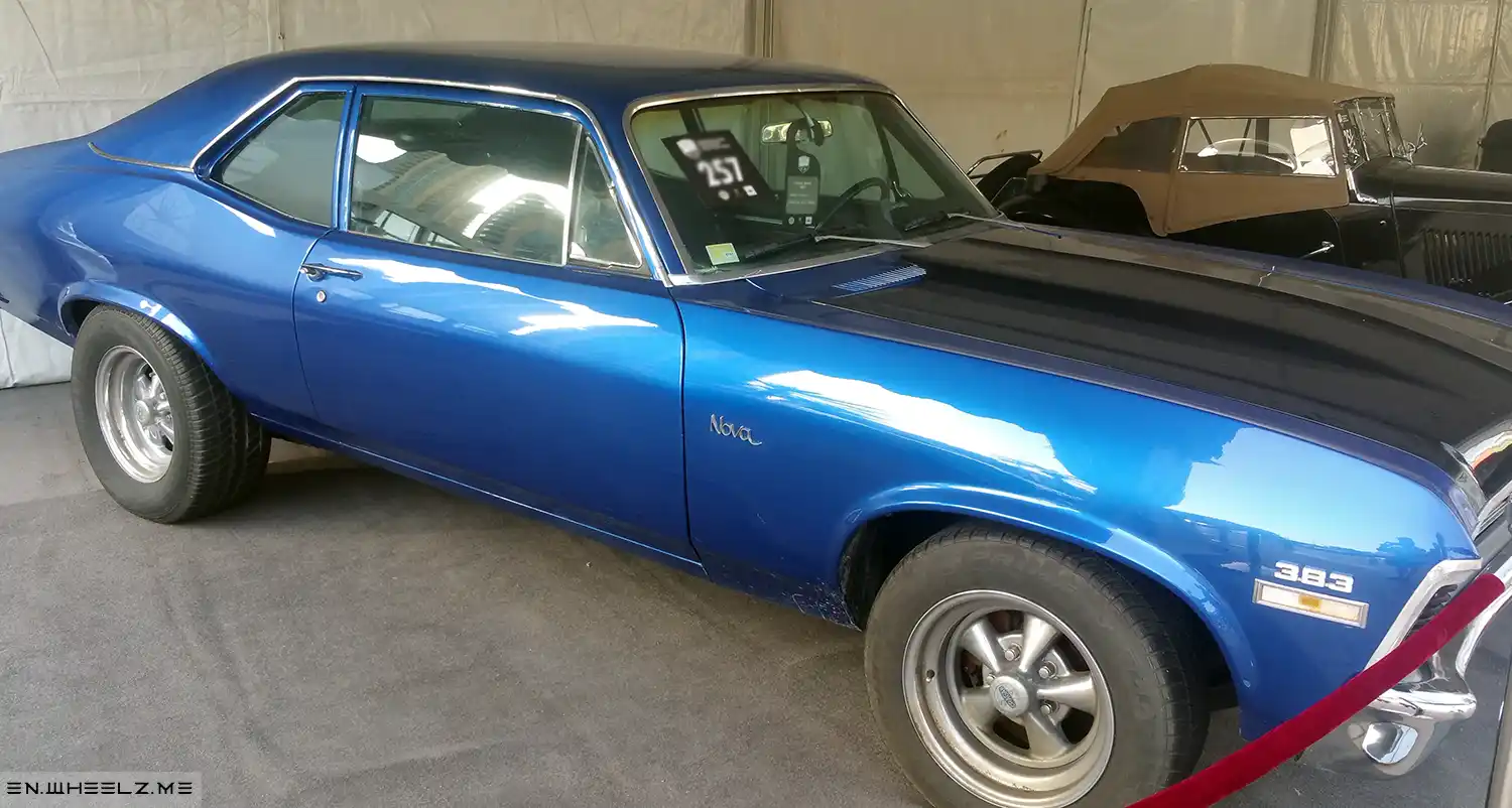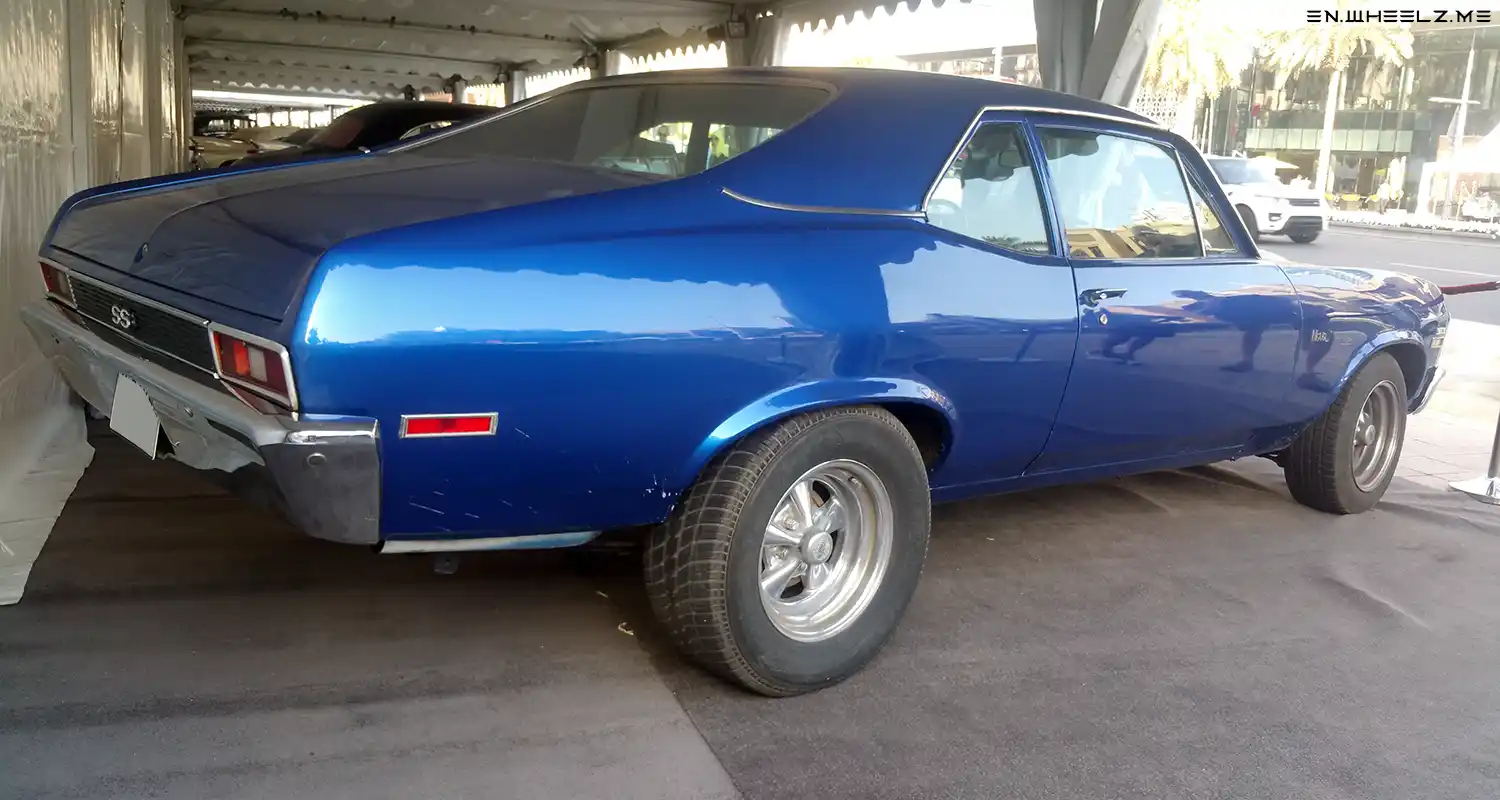 The 1970 Chevrolet Nova had mild styling changes from all-new models introduced in 1968. This car is a Nova SS and the package included 375 horsepower – 396 CID big block V8, dual exhausts, power front brakes, simulated hood air intake, simulated fender louvers, black out grille 14×7 inch wheels and E70 – 14 white-stripe tires.