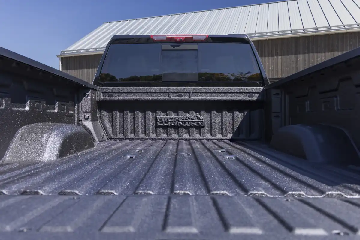 Overall, the horsepower and torque numbers increase to a GM-estimated 450 hp and 940 lb-ft of torque, with final numbers pending SAE certification. Additional changes and upgrades were designed to produce a more efficient combustion, which enhances overall performance. Further, engineers enhanced low-end torque production by up to 25% for improved performance at low speeds or climbing grades, and particularly when trailering. Commanding presence The 2024 Silverado HD has a commanding presence, driven by a freshened front-end appearance that features a new fascia, new headlights, new grille and more. The truck’s chiseled appearance combines with timeless design that not only looks, but is, prepared for anything. C-shaped LED graphic lamps frame the new fascia, inspired by the signature design of the Silverado 1500, while bold, new headlights on LTZ, ZR2 and High Country models feature dual-projector technology. The main and high beams of these new lights are now split into dual functions, and as owners approach or depart their 2024 Silverado HD, an animated lighting sequence welcomes or bids them farewell from the truck. Additional exterior updates include standard tow hooks, and “CHEVROLET” lettering featured on the hood scoop. Six new exterior colors have been added as well: Sterling Gray, Dark Ash, Radiant Red, Auburn Metallic, Lakeshore Blue Metallic (late availability) and Meteorite Metallic (late availability). Atop numerous updates, Silverado HD’s design continues to boast the breakthrough features and technologies that contribute to its true truck capability. They include the Durabed cargo box that optimizes every square inch for maximum cargo capability — including up to 83.5 cubic feet with the long box — as well as the CornerStep rear bumper, BedSteps, available six-position Multi-Flex tailgate, available 120-volt power outlet, available power tailgate and more. The lineup also retains the popular Z71 Sport Edition, Z71 Chrome Sport Edition and Midnight Special Edition appearance packages, as well as the Alaskan Snow Plow Special Edition. New wheel and tire options for the Silverado HD include: