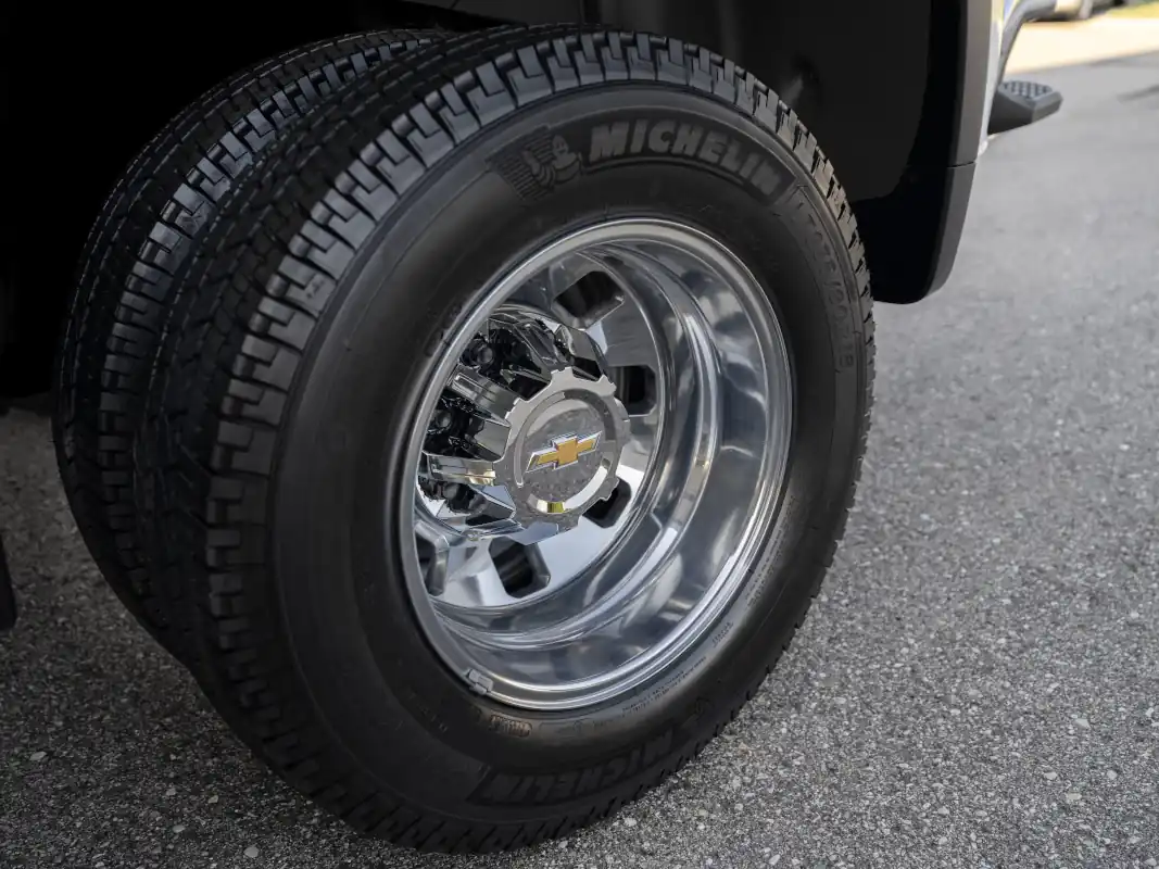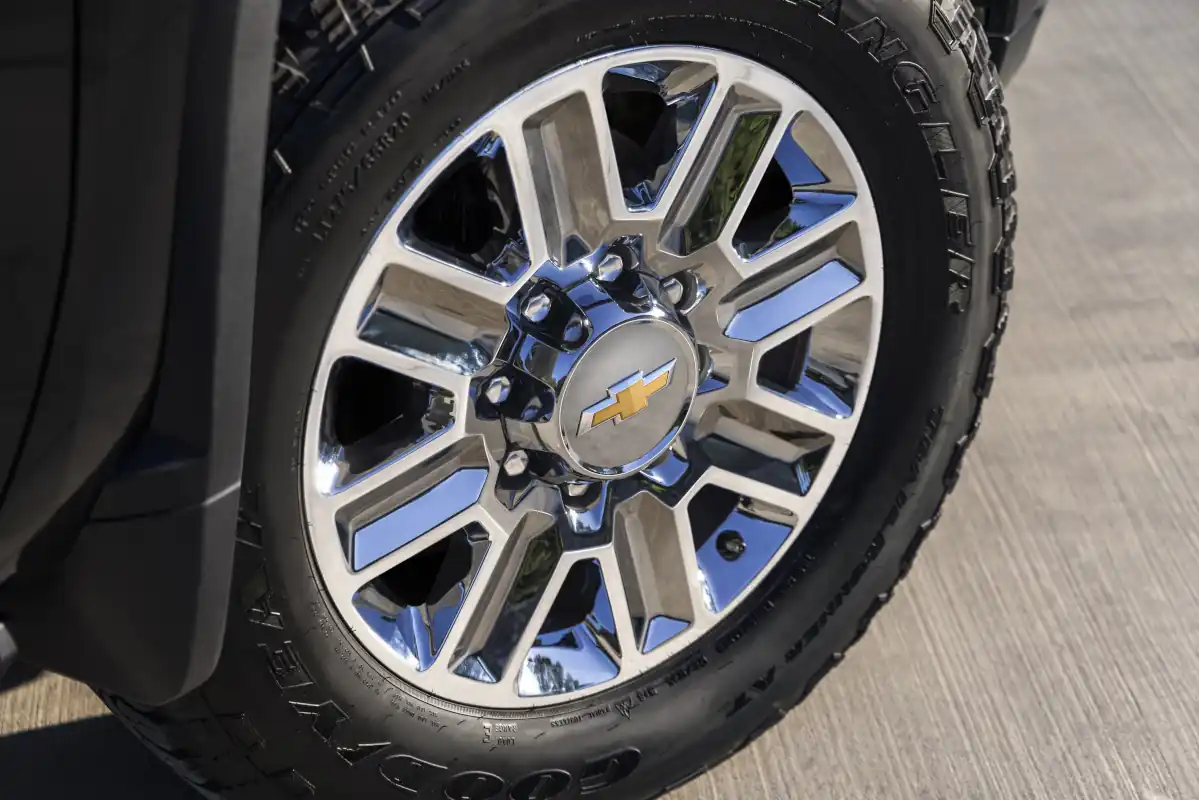 - 18-inch polished aluminum dually wheel and all-terrain tires optional on 3500HD LTZ and standard on 3500HD High Country