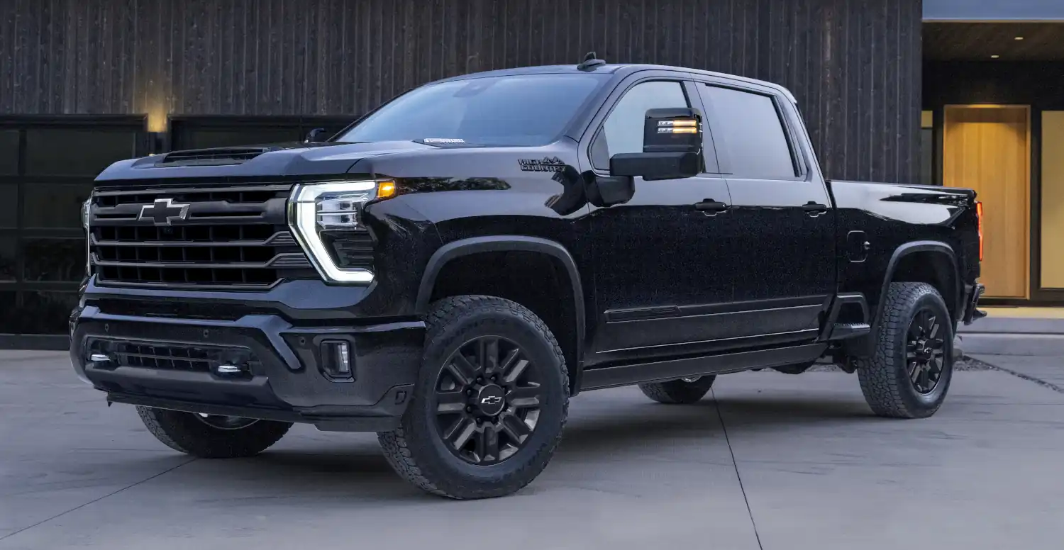 Overall, the horsepower and torque numbers increase to a GM-estimated 450 hp and 940 lb-ft of torque, with final numbers pending SAE certification. Additional changes and upgrades were designed to produce a more efficient combustion, which enhances overall performance. Further, engineers enhanced low-end torque production by up to 25% for improved performance at low speeds or climbing grades, and particularly when trailering. Commanding presence The 2024 Silverado HD has a commanding presence, driven by a freshened front-end appearance that features a new fascia, new headlights, new grille and more. The truck’s chiseled appearance combines with timeless design that not only looks, but is, prepared for anything. C-shaped LED graphic lamps frame the new fascia, inspired by the signature design of the Silverado 1500, while bold, new headlights on LTZ, ZR2 and High Country models feature dual-projector technology. The main and high beams of these new lights are now split into dual functions, and as owners approach or depart their 2024 Silverado HD, an animated lighting sequence welcomes or bids them farewell from the truck. Additional exterior updates include standard tow hooks, and “CHEVROLET” lettering featured on the hood scoop. Six new exterior colors have been added as well: Sterling Gray, Dark Ash, Radiant Red, Auburn Metallic, Lakeshore Blue Metallic (late availability) and Meteorite Metallic (late availability). Atop numerous updates, Silverado HD’s design continues to boast the breakthrough features and technologies that contribute to its true truck capability. They include the Durabed cargo box that optimizes every square inch for maximum cargo capability — including up to 83.5 cubic feet with the long box — as well as the CornerStep rear bumper, BedSteps, available six-position Multi-Flex tailgate, available 120-volt power outlet, available power tailgate and more. The lineup also retains the popular Z71 Sport Edition, Z71 Chrome Sport Edition and Midnight Special Edition appearance packages, as well as the Alaskan Snow Plow Special Edition. New wheel and tire options for the Silverado HD include: