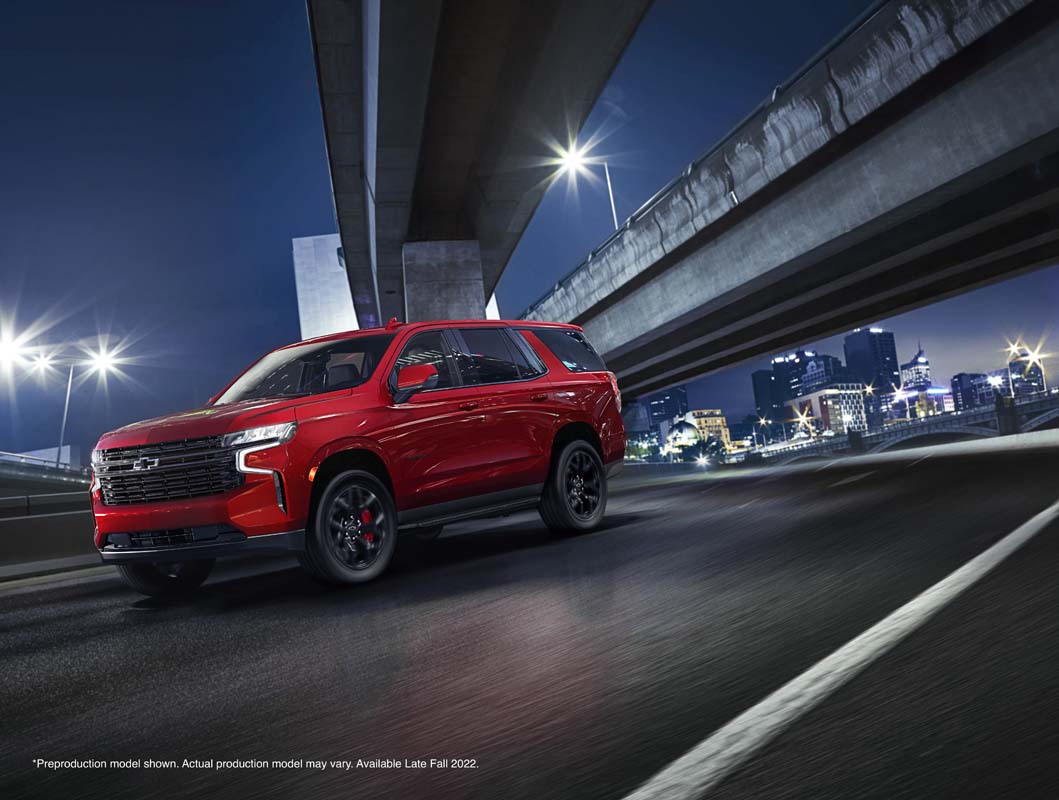The Tahoe RST Performance Edition will make its public debut at the North American International Auto Show in Detroit. The package is priced at a starting MSRP4 of $8,525 and will be exclusively available on the 2023 Tahoe RST with the 6.2L V-8 engine. Production begins in Q4 2022 with U.S. and globally sourced parts at GM’s Arlington Assembly in Texas.