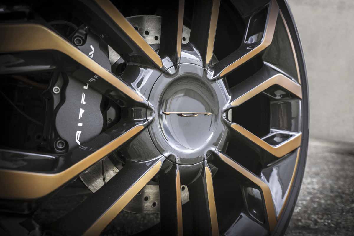 The Galaxy Black exterior unites with Cyprus Copper accents both inside and out to imprint the latest Airflow iteration with its own refined, sophisticated design. Cyprus Copper accents highlight the top of the panoramic glass roof as well as select surfaces of the 22-inch wheels.