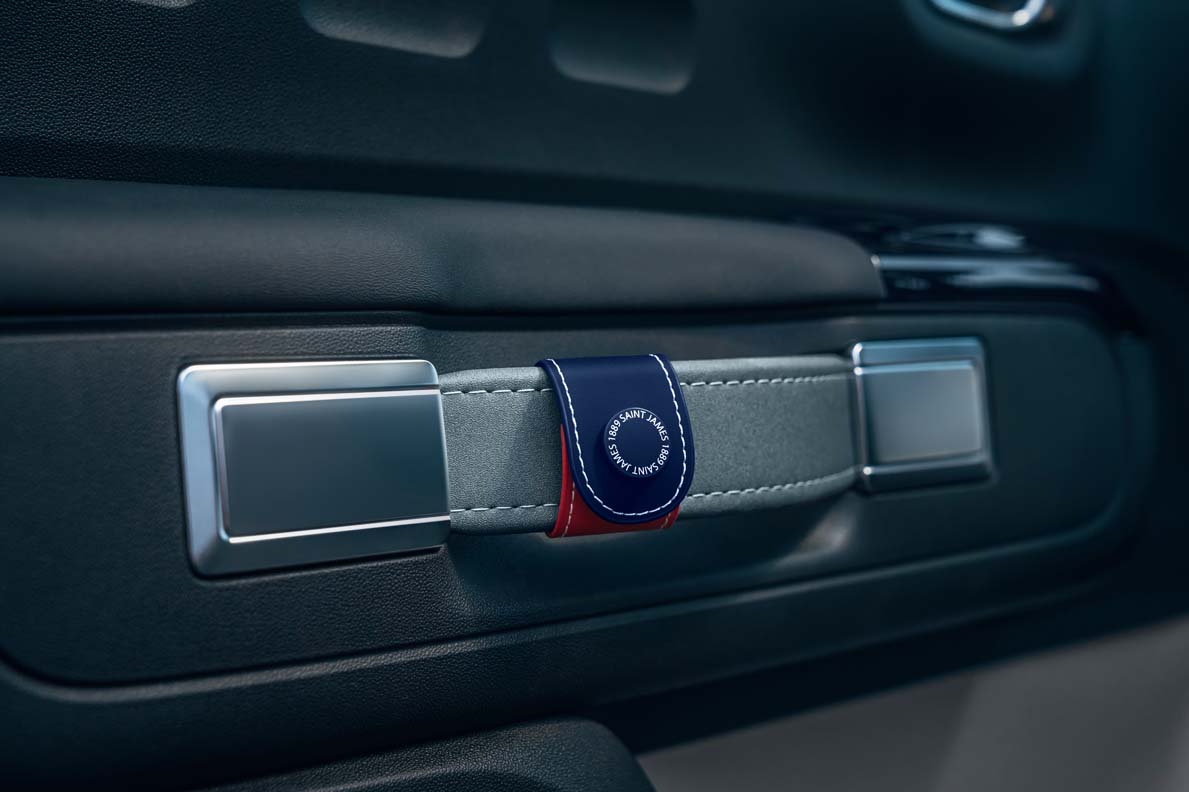 The C3 Saint James is immediately recognisable by its blue, white and red roof sticker, signed Saint James. This design is full of character and encircles the roof capsule which enlivens the roof and gives the model its identity. The Saint James signature can also be found under each rear-view mirror via an exclusive metal plate badge in the spirit of the blue-white-red pattern, associated with the famous Saint James logo. The limited edition also features a specific rear window sticker in the colours of the Normandy brand, which also matches the roof sticker. All these subtle details, inspired by the universe of Saint James, emphasize the C3 silhouette.