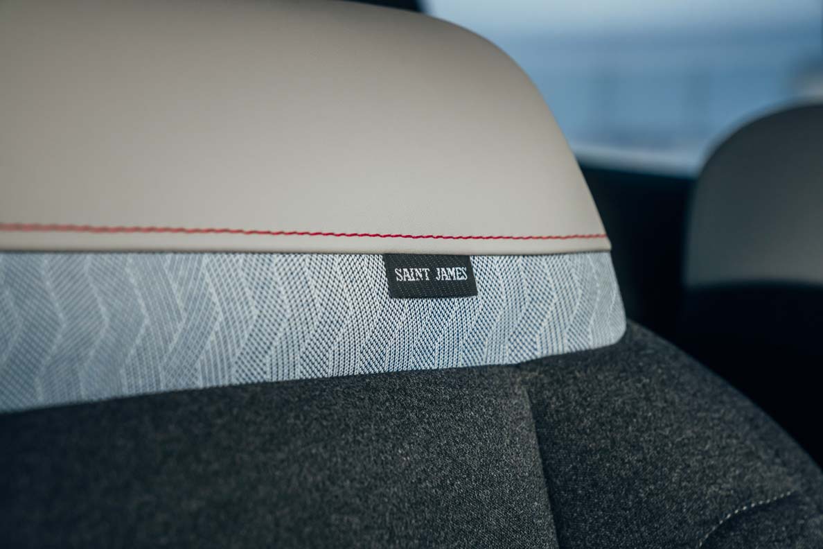 Inside this limited edition, C3 offers a specific Saint James ambience, reflecting the expertise of both brands. It offers its occupants the very best in on-board comfort with the adoption of Advanced Comfort seats, which offer a specific design for an unequalled feeling of well-being. These armchairs are upholstered in grey. A decorative chevron band labelled Saint James on the upper part of the seatback, and red stitching above the band evokes woollen bobbins and the signature stripe of the famous marinière sailor’s jacket, bringing energy to the ensemble.