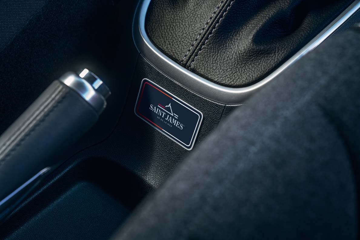 A truly fashionable touch is provided by this decorative band that could be found on the elbow patches of Normandy jumpers. This limited edition dresses the seats from head to toe with white stitching that stands out on the lower part of the seat and echoes the outline of the Saint James specific upholstery. The white stitching is also found on the dashboard, which, along with the chrome contours of the gear lever, adds an extra touch of refinement. The interior also features a decorative blue and red door strap with a Saint James push-button on the driver’s door panel, as well as a plaque under the gear lever with the Saint James logo, which is inseparable from Mont Saint-Michel.