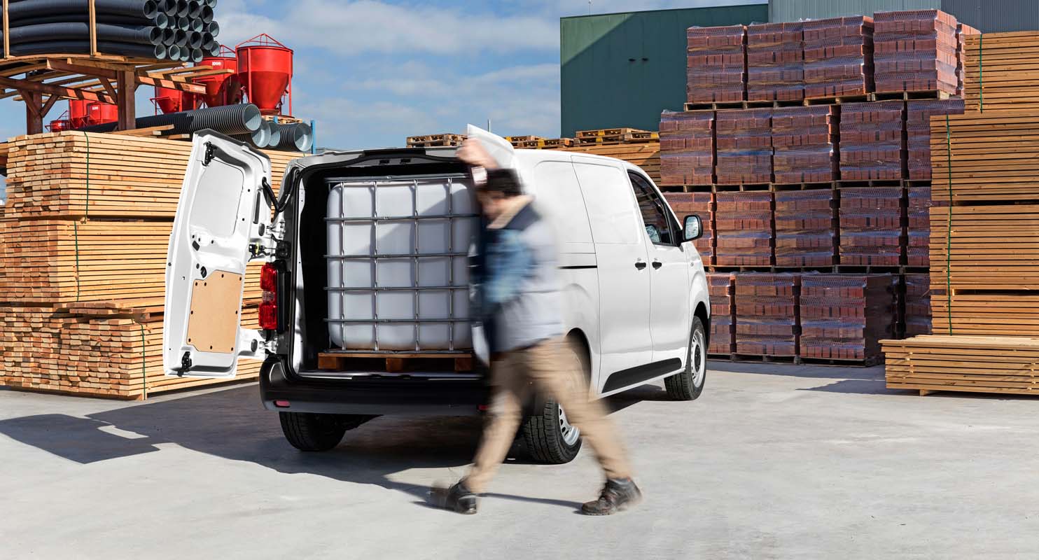 ë-Jumpy boasts the same proven features as those on the combustion version, including the variety of body styles, a height of 1.90 m designed for access to all car parks, useful volume of up to 6.6 m3, payload of 1,275 kg, and the versatility provided notably by Moduwork, which converts the front area of the vehicle into a mobile office.