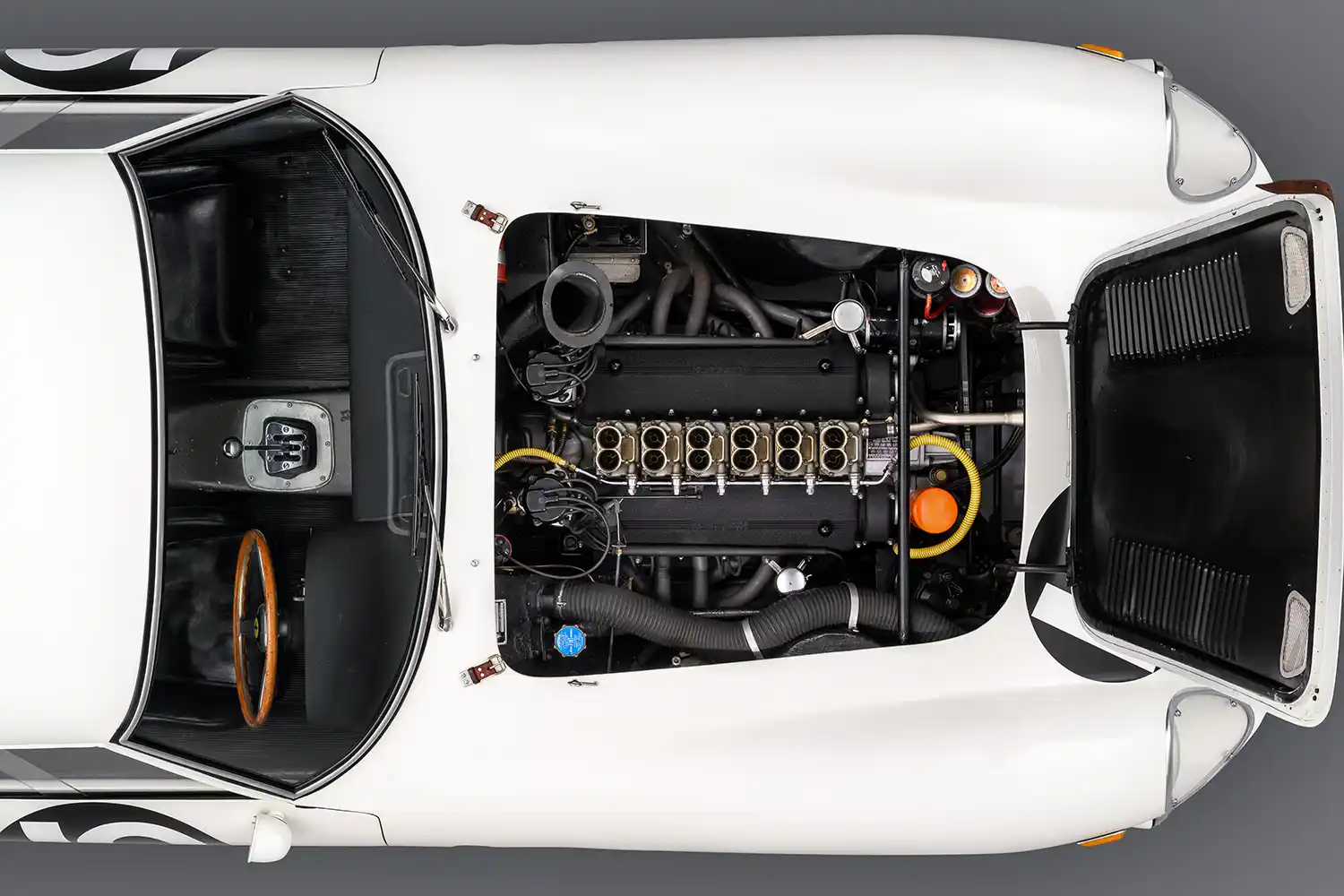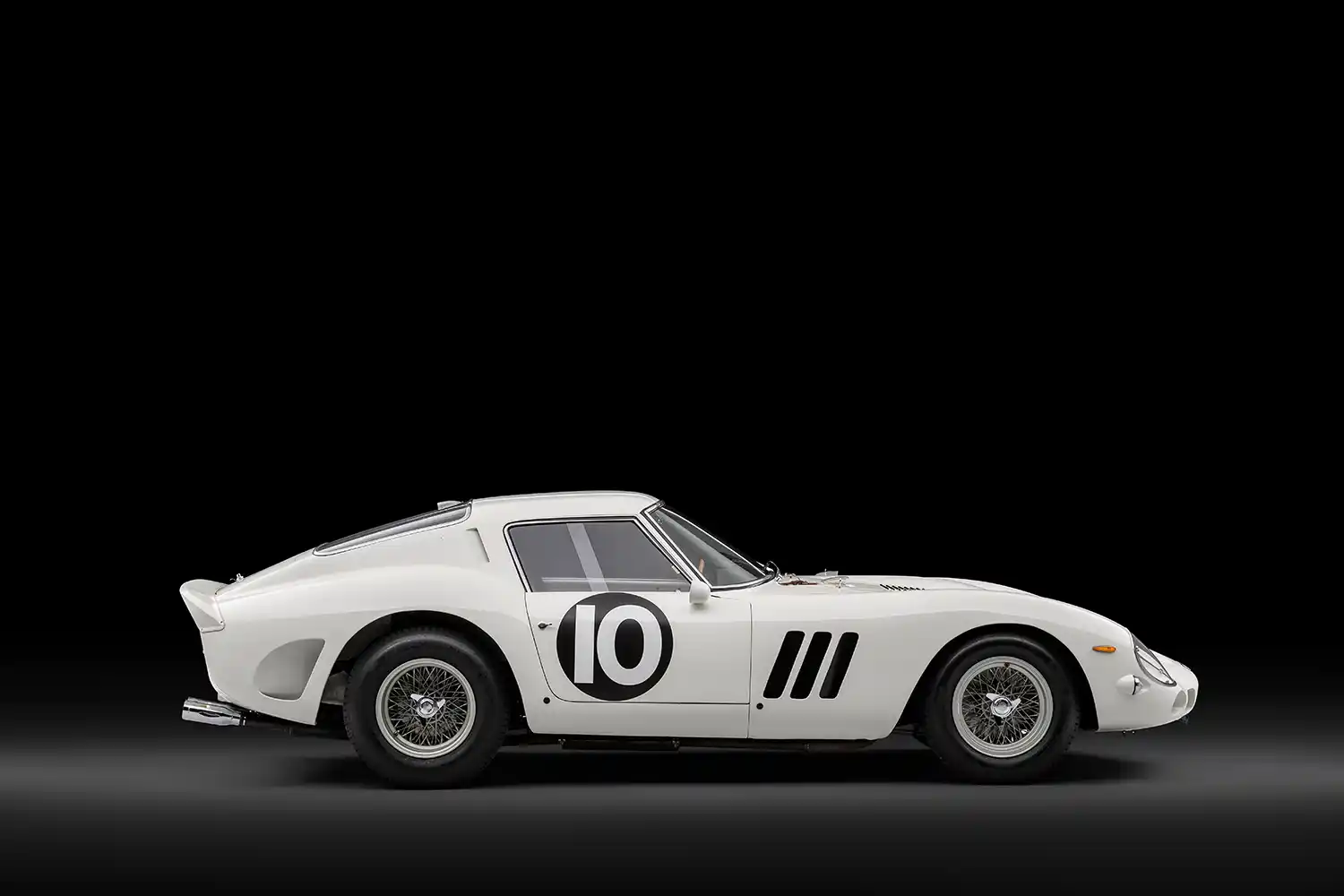 The 250 GTO that will be on show is a particularly special, even by 250 GTO standards. The car, chassis 3729 GT, is one of just eight right-hand-drive GTOs out of the 36 built. The only version delivered in Bianco (white), it was an order received via Maranello Concessionaires for Jaguar dealer and famous British racing team owner John Coombs.