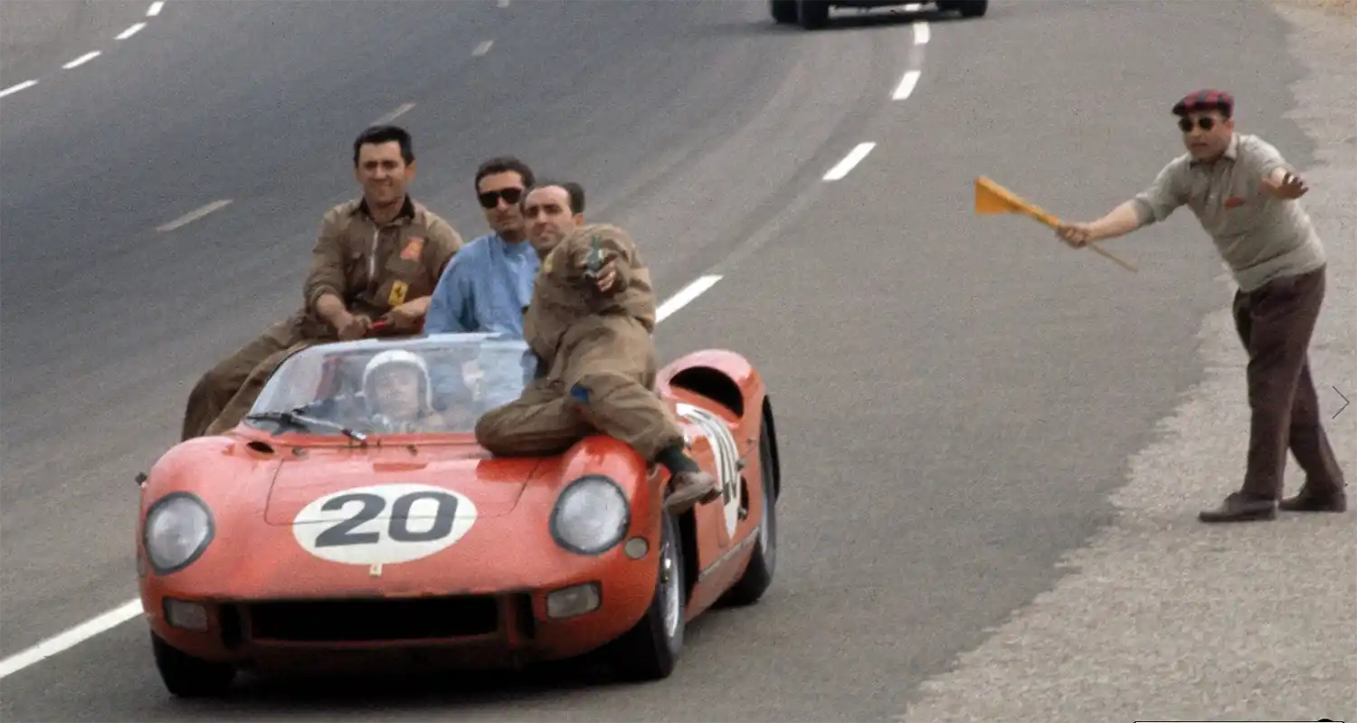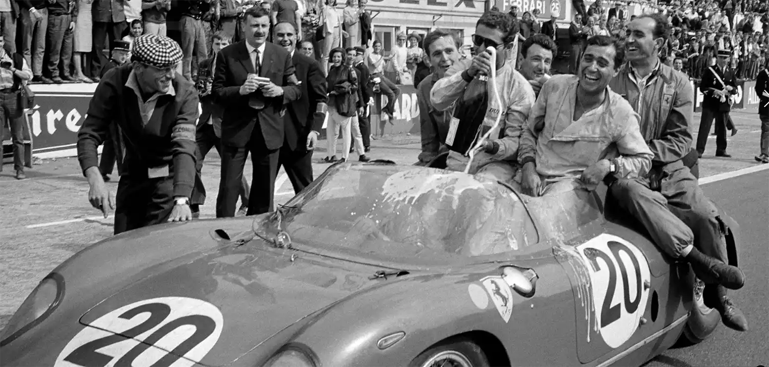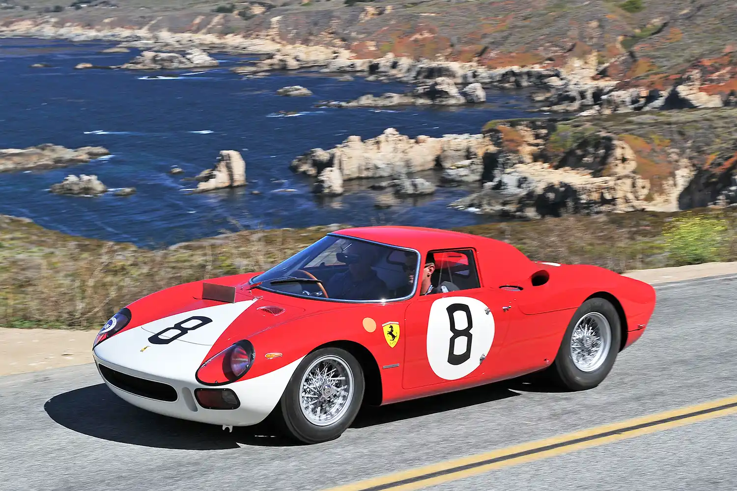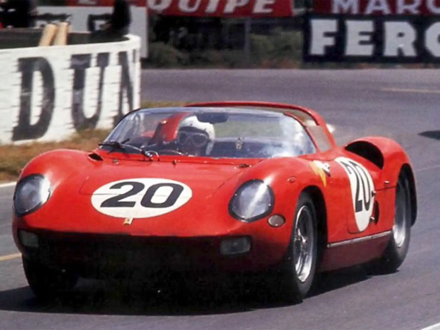 This mid-engined, V12-powered car is the sole Ferrari to have ‘done the double’ at Le Mans. It won for Scuderia Ferrari as a 250P in 1963 and then as a re-engined 275P in 1964. Ludovico Scarfiotti and Lorenzo Bandini took it to initial victory, heading up the Maranello marque’s clean sweep of the top six places. The then 3.0-litre 250P won the Scuderia’s fourth consecutive 24 Hours victory by more than 125 miles (16 laps), setting a new distance record and becoming the first non-front-engined victor. It was also the first outright success for an all-Italian outfit – both car and drivers.