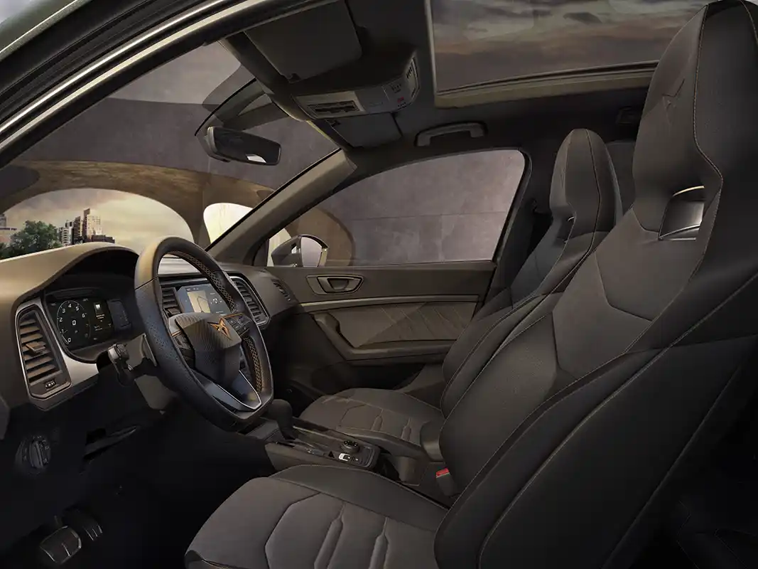 Whether it’s the CUPRA lettering in dark chrome or the front grill, cladding parts exterior mirror covers and 19” alloy wheels in sport black matt, the new exterior design elements add to the already distinguished character.