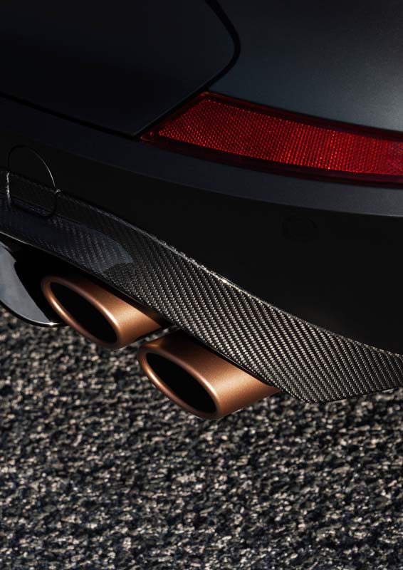 The side shape of the high-performance crossover coupe specifies the power found under the bonnet and the overall dynamism of the vehicle and with the addition of flared wheel arches – housing the vehicles wider track – that are home to the VZ5’s 20” copper machined alloy wheels, designed exclusively for the vehicle along with the 18” brakes with Akebono callipers in copper, the VZ5 exudes dynamism.