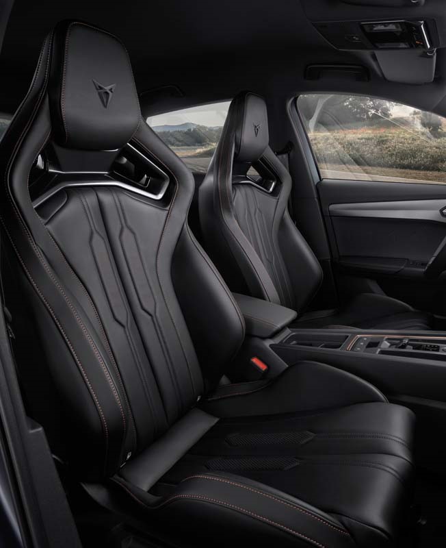Inside the cabin provides modernity and sportiness with a unique take on the feel of the CUPRA brand. Interior highlights include the CUPRA steering wheel, a 12’’ infotainment and connectivity solutions. The finishing touch is the brand-new leather CUPBucket seats, presented for the first time with the VZ5. Those new bucket seats deliver a sportier seating position and have been trimmed by the experts and race-pilots ergonomically in this way.