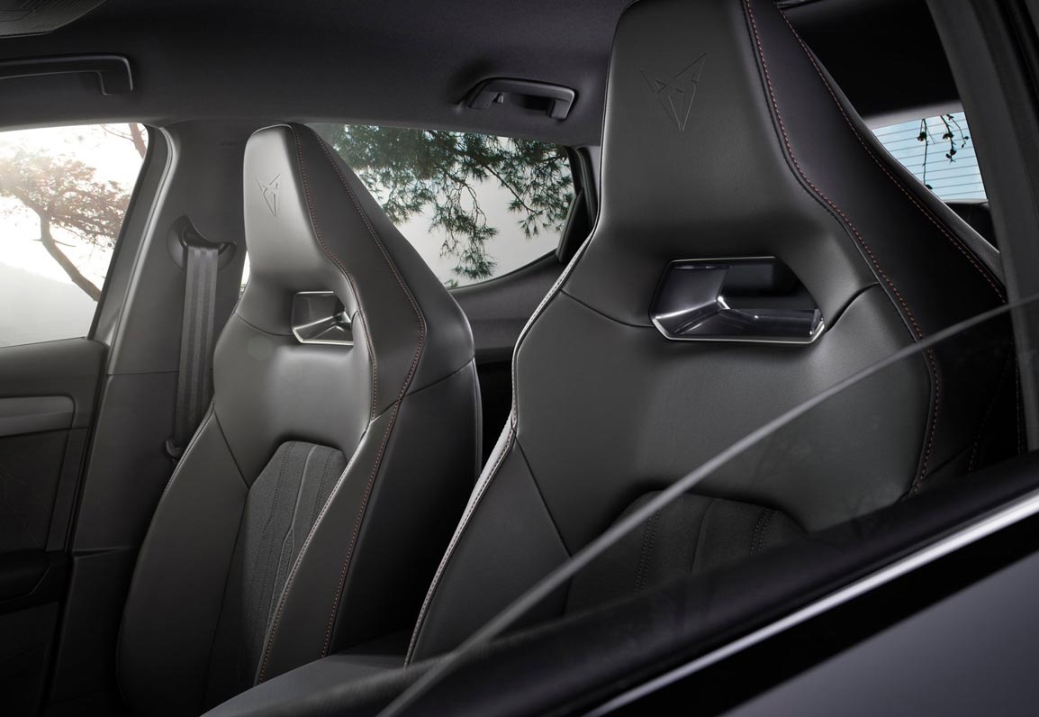 Throughout the interior copper details and dark chrome details bring a subtle sense of drama, with highlights including the dashboard and door mouldings brushed in dark aluminium, with a sophisticated tone in tone effect, illuminated CUPRA doorstep in the front doors and colour coded door panels and seats.